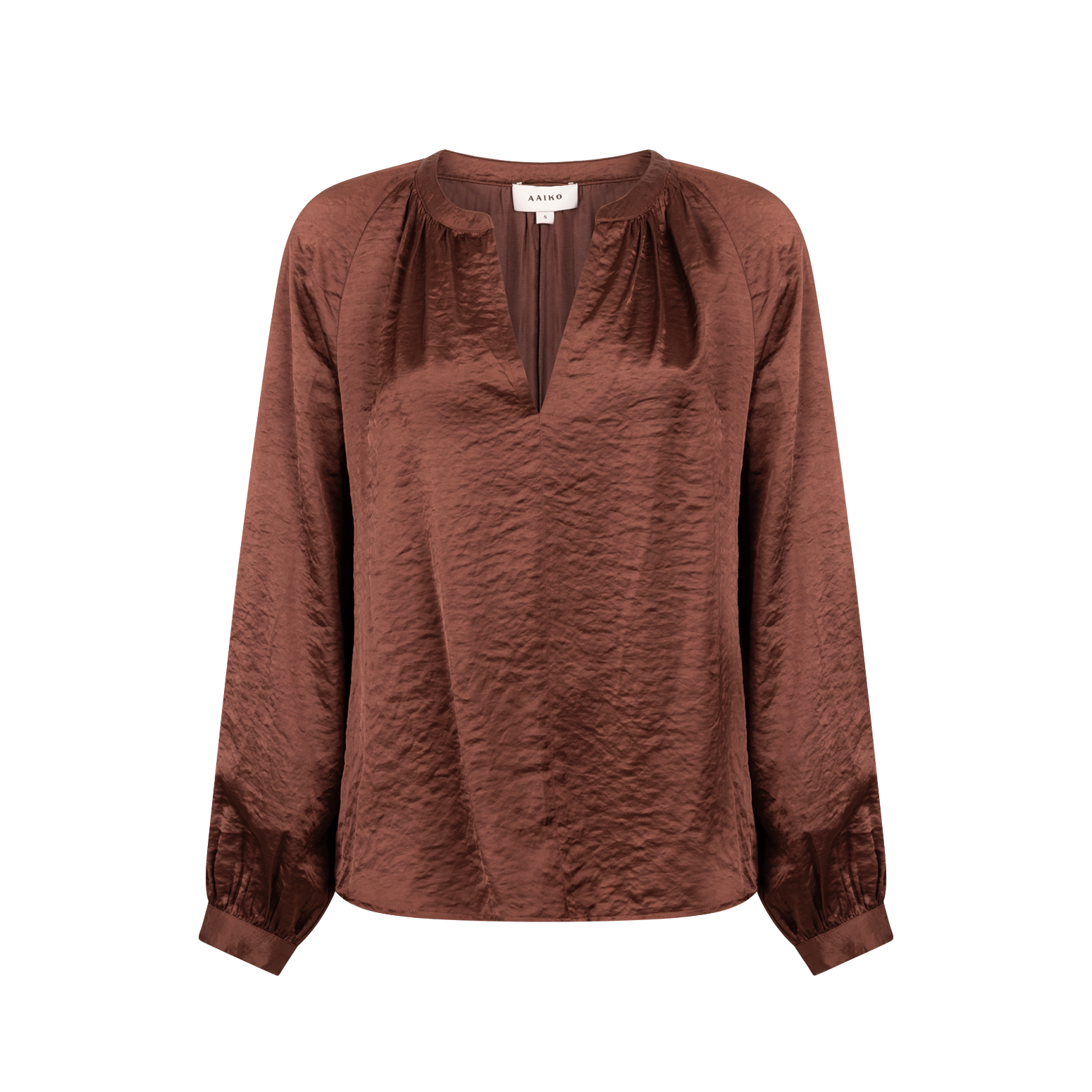 De Aaiko alanza vis top in brunette is een moderne en vrouwelijke top met een flatterende pasvorm. Het lichte, comfortabele materiaal zorgt voor een aangenaam draaggevoel, terwijl de warme brunette tint een elegante uitstraling geeft. Perfect te combineren voor zowel casual als stijlvolle looks.