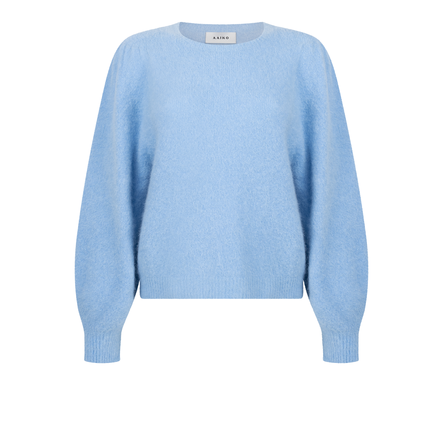 De Aaiko denize sweater in office blue is een moderne trui in een frisse blauwtint die stijl en comfort samenbrengt. Gemaakt van een zachte, hoogwaardige stof met een relaxte pasvorm voor een elegante maar ontspannen look. Perfect te combineren met een pantalon of rok voor een moeiteloos chique outfit.