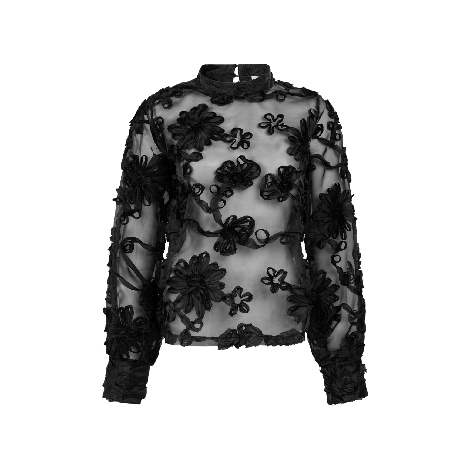 De Aaiko Lucia Flower PES Top in Black is een stijlvolle top met een vrouwelijke en elegante uitstraling. Het lichte, soepele materiaal zorgt voor comfort en een luxe feel, terwijl het bloemenmotief een speelse touch toevoegt. Perfect te combineren met een topje eronder voor zowel casual als chique looks.