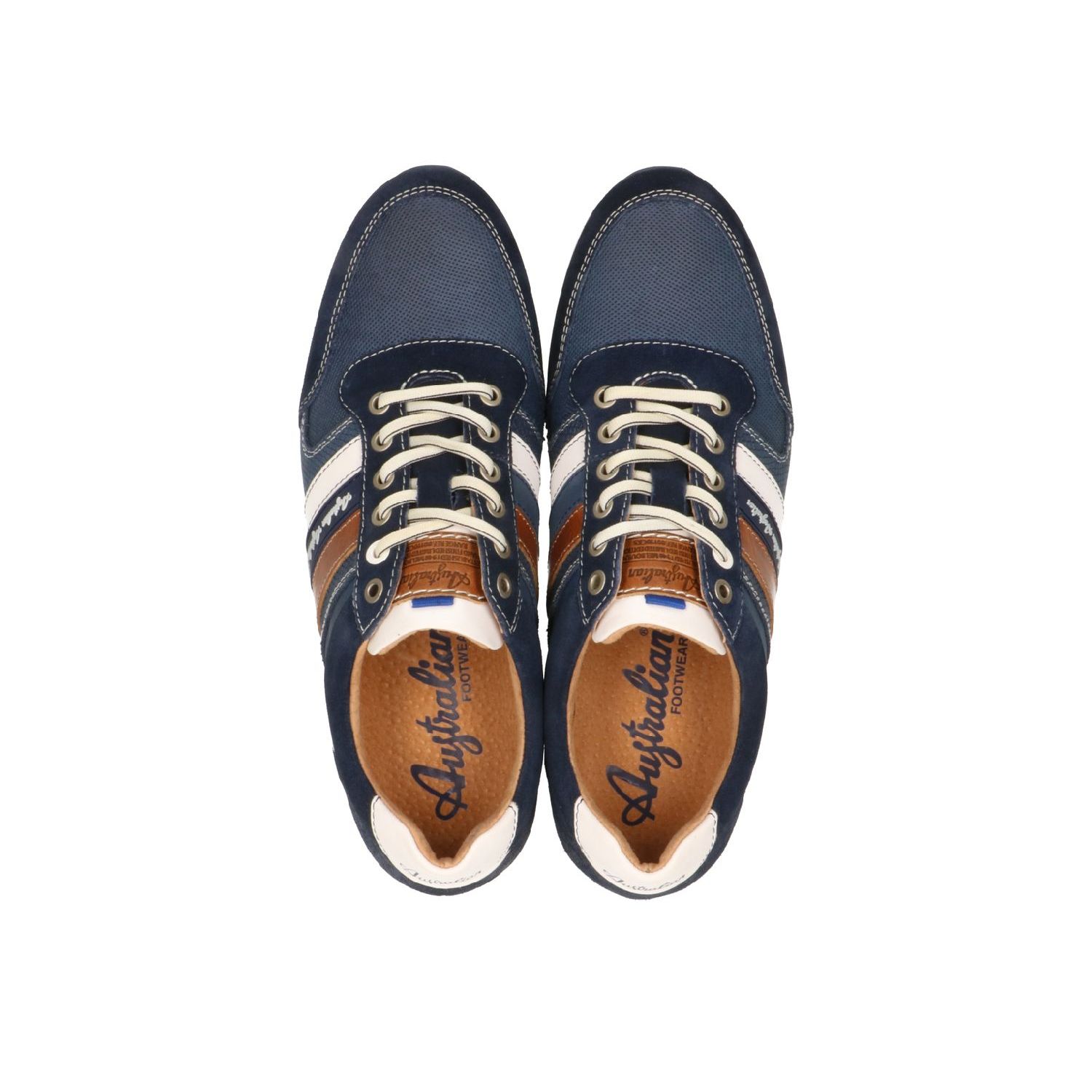 De Camaro Mid Blue van Australian is een blauwe sneaker voor heren op een subtiele wit/blauwe zool van rubber die grip geeft en soepel loopt. De upper is gemaakt van blauw suede en leer met witte en bruine accenten. De leren binnenvoering en het uitneembare voetbed zijn van leer en geven een comfortabel loopcomfort.