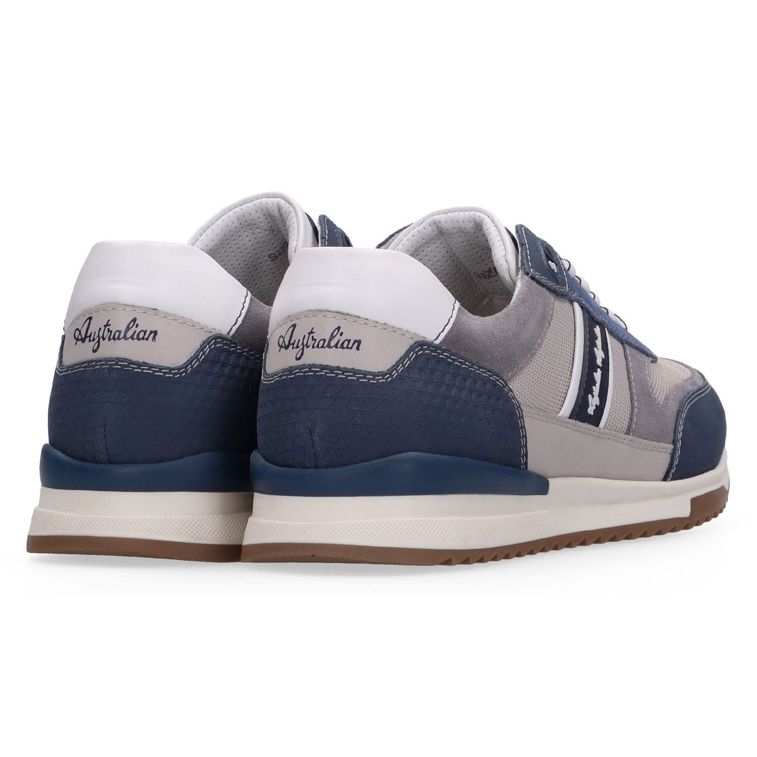 De Filmon Grey Blue White Leather van Australian is een leren sneaker voor heren in de kleur grijs met blauwe en witte accenten. De sneaker is gemaakt van mooie kwaliteit leer en suede. Deze sportieve veterschoen staat op een stevige rubberzool met een verende witte tussenzool. De leren binnenvoering en het uitneembare voetbed zorgen voor een optimaal draagcomfort.