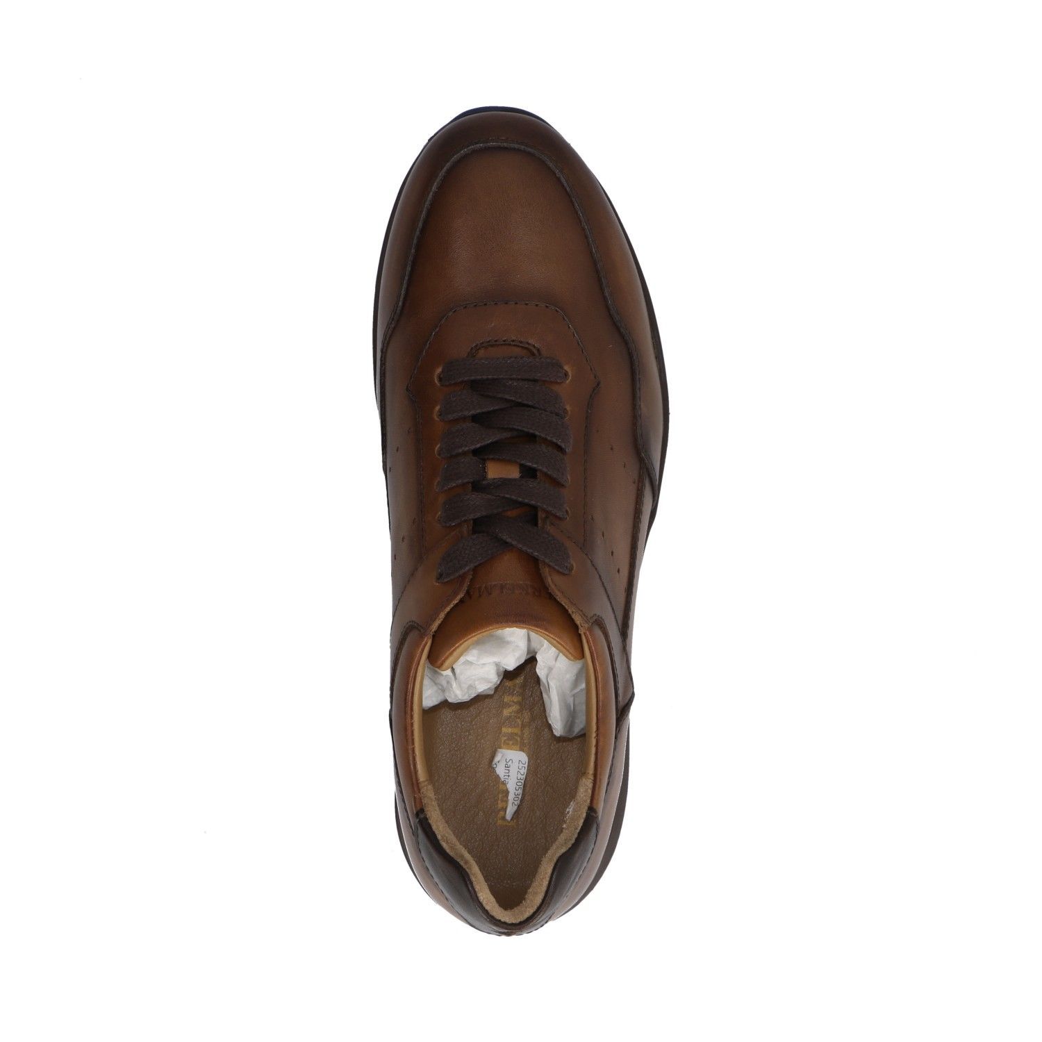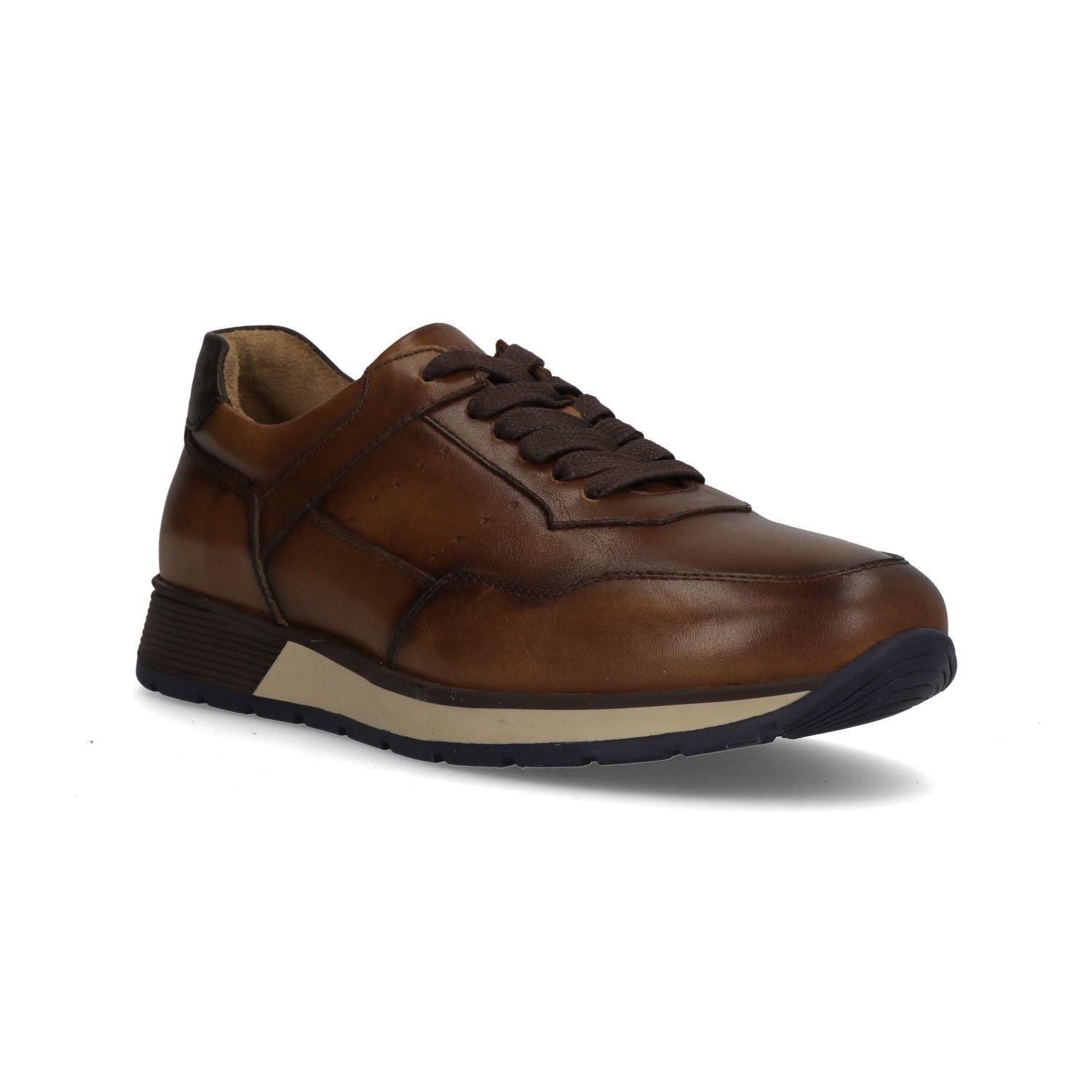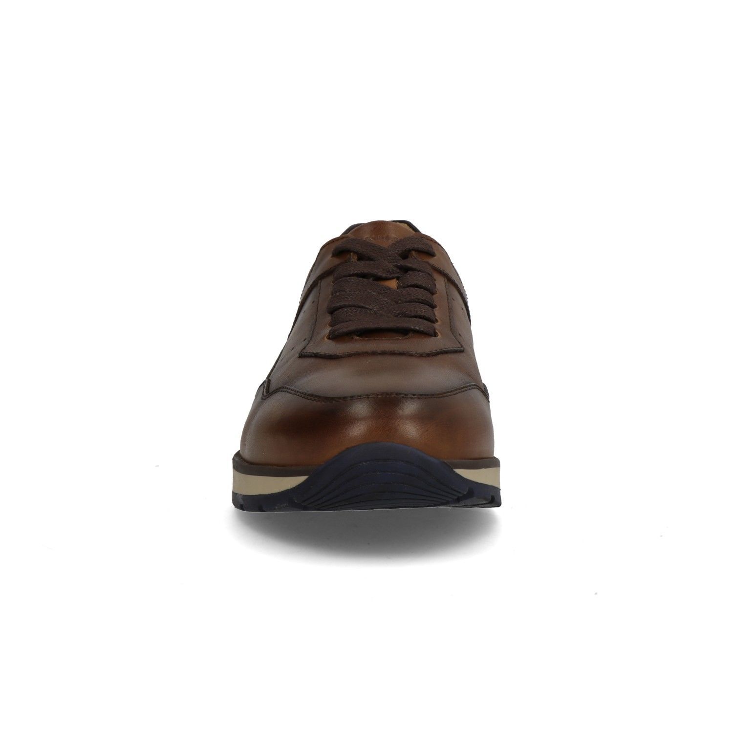 De Santiago is een bruine sneaker voor heren gemaakt van soepel calfsleer in de kleur cognac. Deze sportieve veterschoen heeft een leren binnenvoering en een uitneembaar voetbed dat voor veel comfort zorgt. De soepele rubberzool geeft goede grip en ondersteuning bij elke stap. Match deze leren sneaker onder je casual outfit en je look is compleet.
