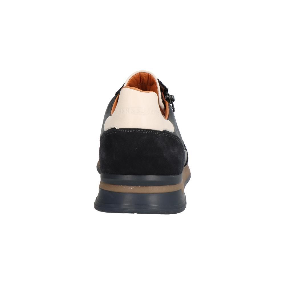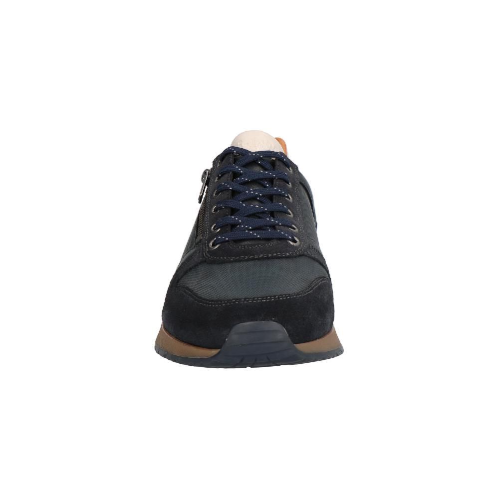De Trenton is een donkerblauwe leren sneaker voor heren gemaakt van gladleer en suede met witte accenten op de tong en de hiel. De binnenvoering en het uitneembare voetbed zijn van leer en voelen comfortabel zacht aan. Naast de vetersluiting heeft deze sportieve veterschoen voor heren een gemakkelijke rits voor het snel aan- en uittrekken van de schoen.