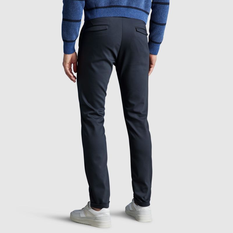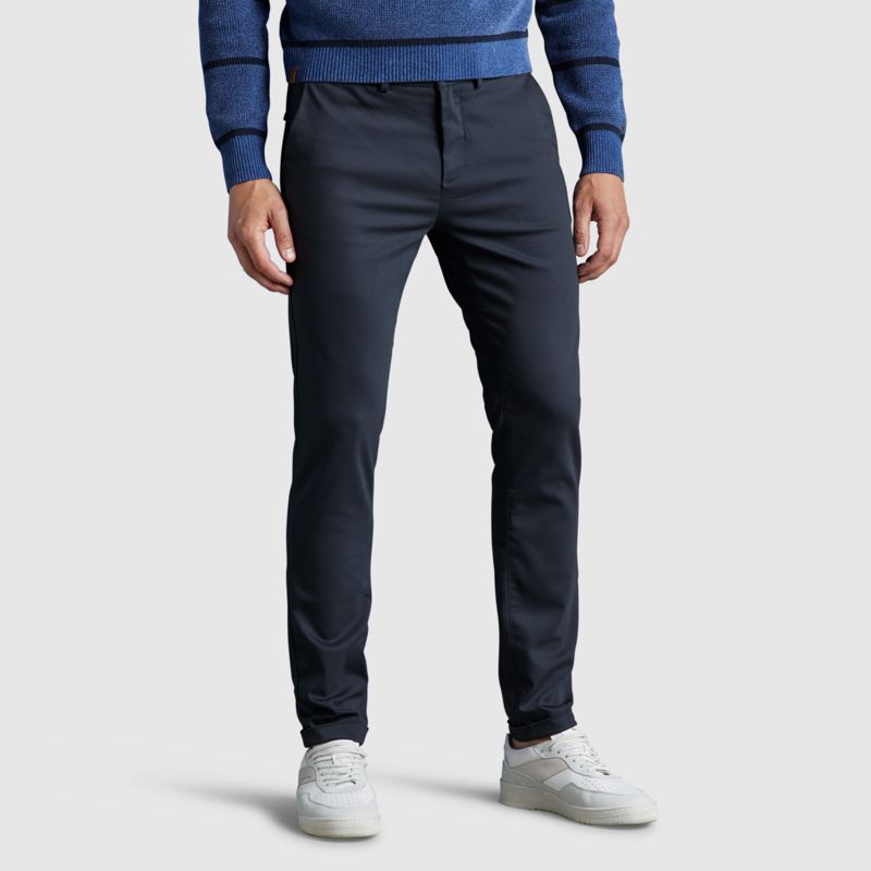 Deze chino van Cast Iron is donkerblauw van kleur. Het is een slimfit model met steekzakken.