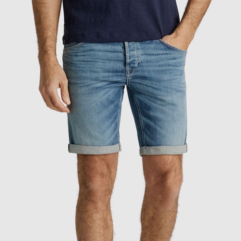 Deze short van Cast Iron is denim blauw van kleur. De short heeft een knoopsluiting en vijf zakken.