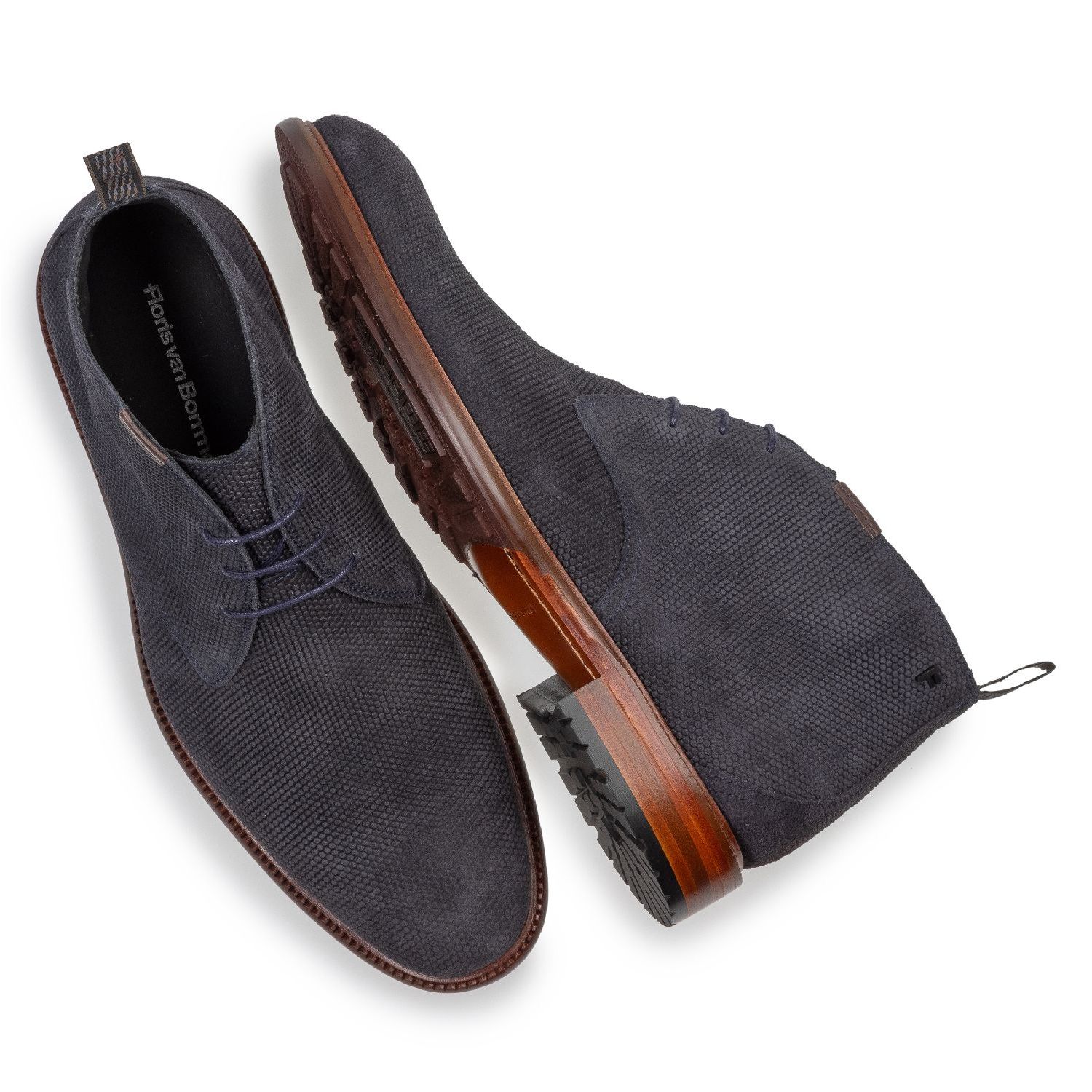 De Normer is een donkerblauw suede boot voor heren met een fijne print.. Deze stoere maar toch geklede veterboot staat op een stevige rubberzool met een fijn licht profiel en een lederen zoolrand die de schoen een luxe uitstraling geeft. De kalfslederen binnenvoering en leren uitneembaar voetbed zorgen voor een comfortable pasvorm. Het gebruik van een eigen voetbed hoort tot de mogelijkheden. De wijdte H maakt deze nette herenschoen geschikt voor de normale tot bredere voet. Het donkerblauwe suede met fijne print zorgt voor een casual uitstraling.