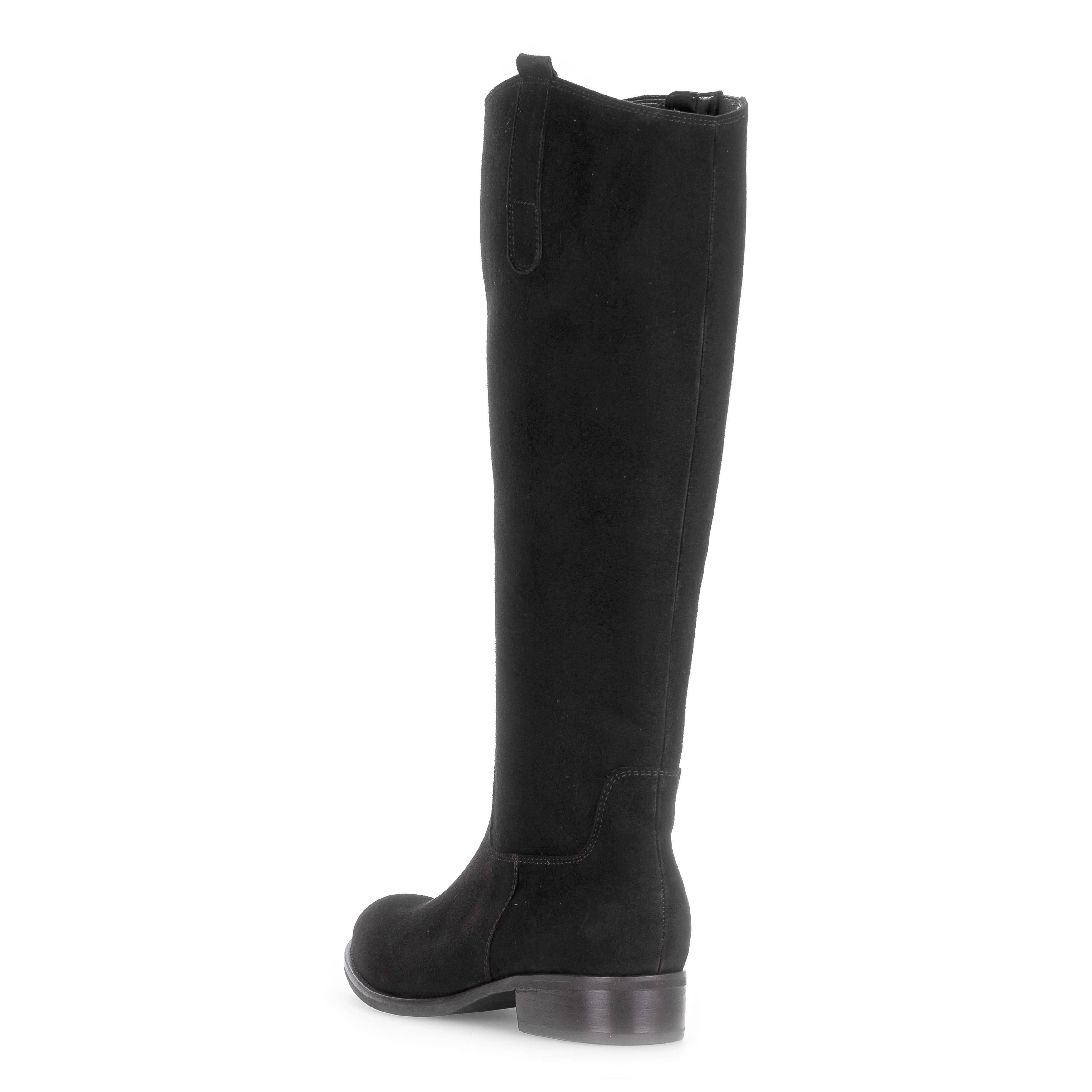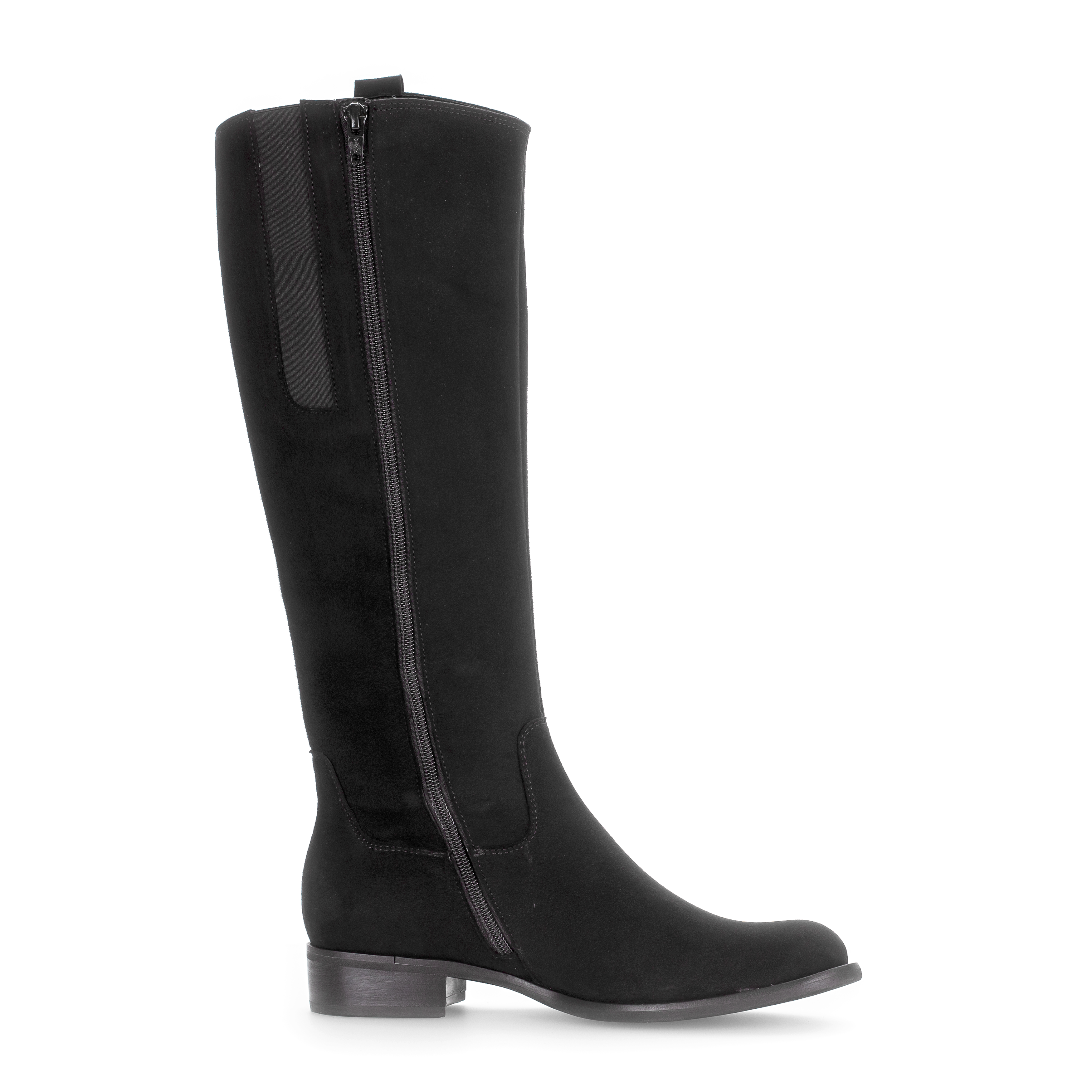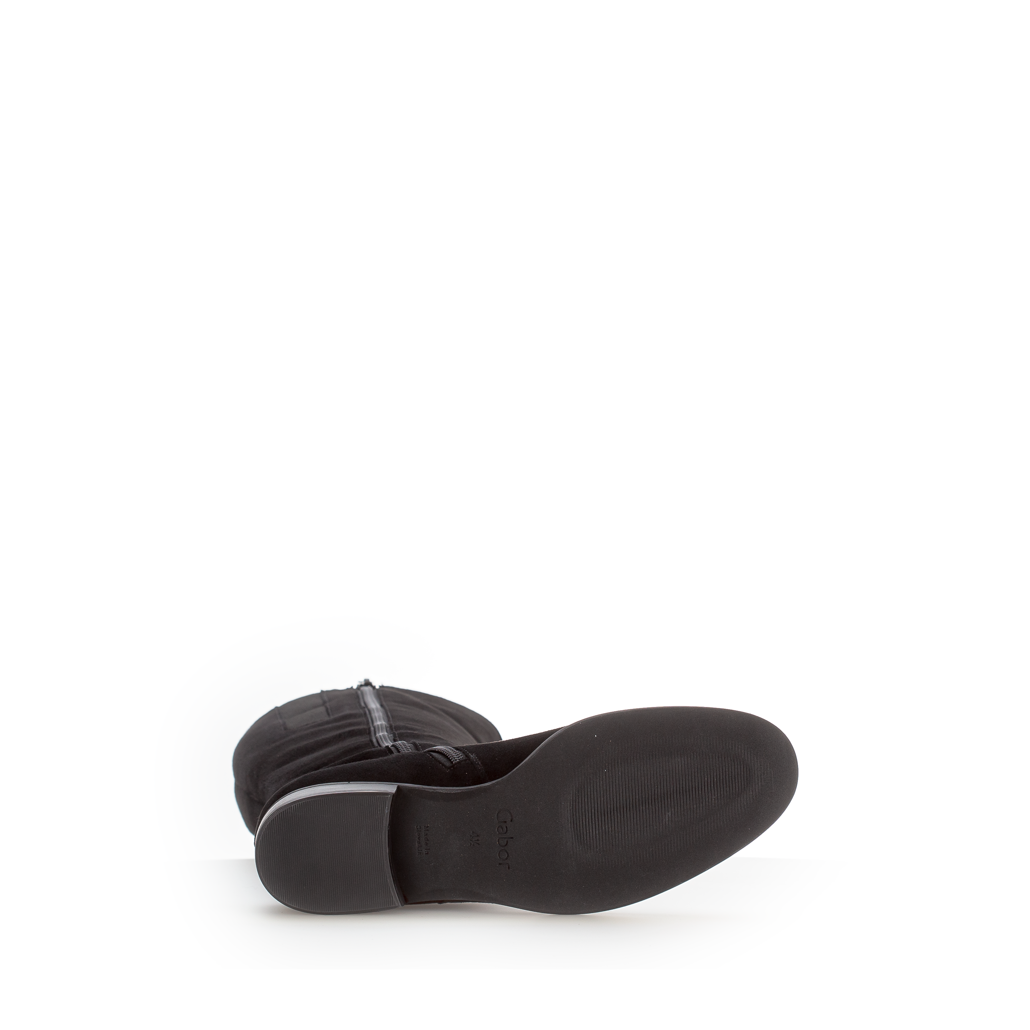 Lange laars voor dames uit de Gabor Fashion collectie. Deze lange laars is gemaakt van soepel zwart suede en heeft een makkelijke rits aan de binnenzijde. De schachtwijdte is "M" en het voetbed is uitwisselbaar zodat ook een eigen voetbed gebruikt kan worden. De laars heeft een rubberzool met een laag hakje zodat je de hele dag comfortabel en elegant voor de dag komt.