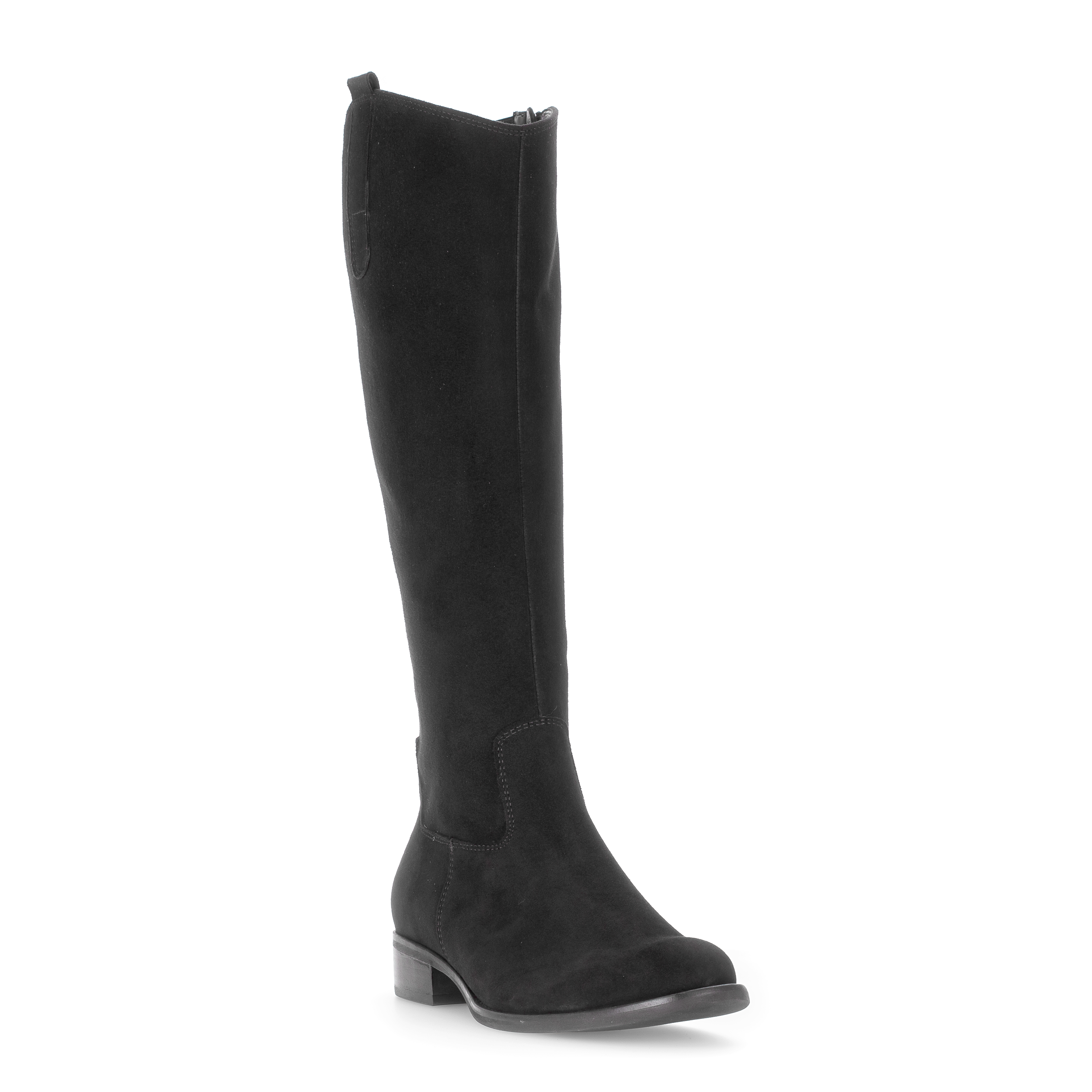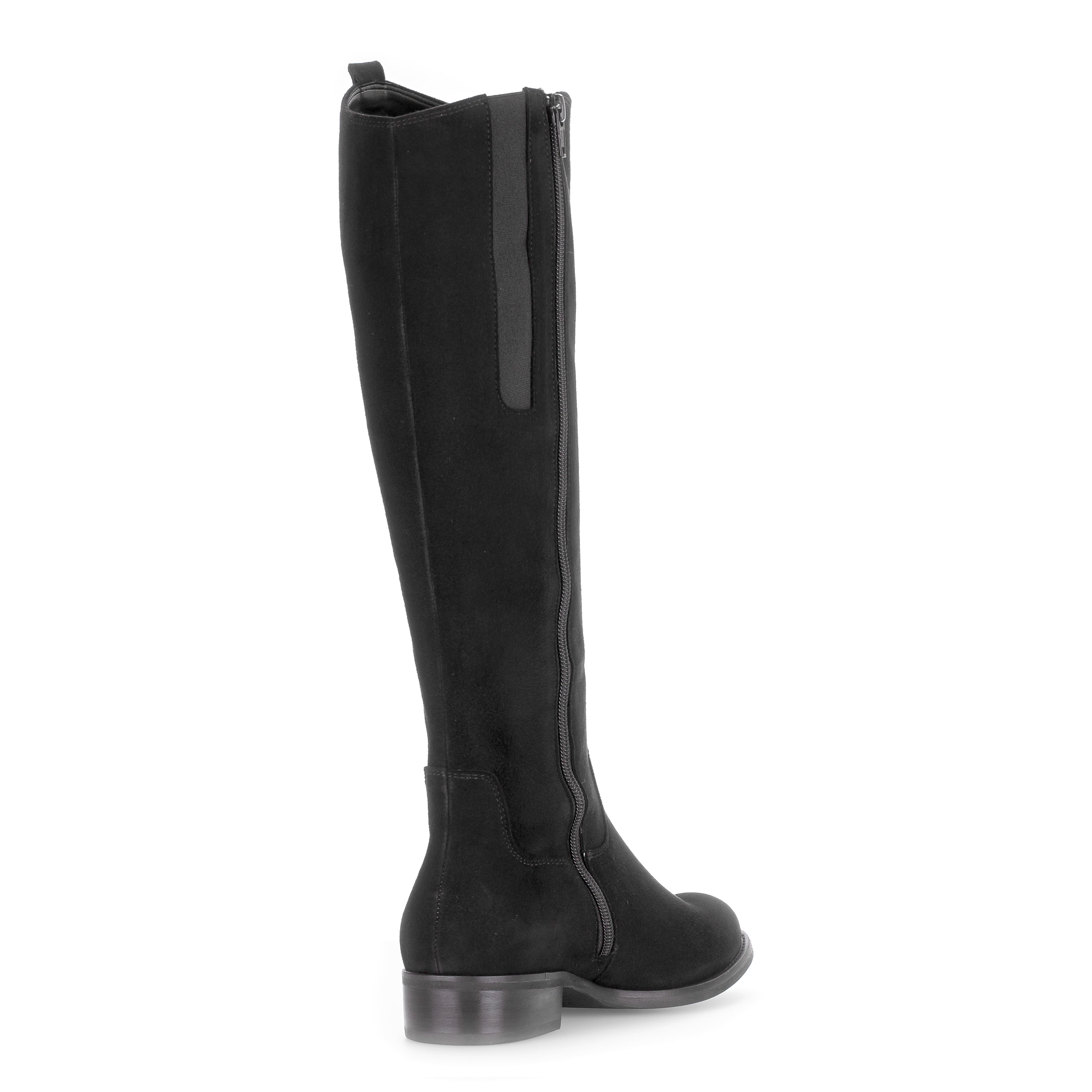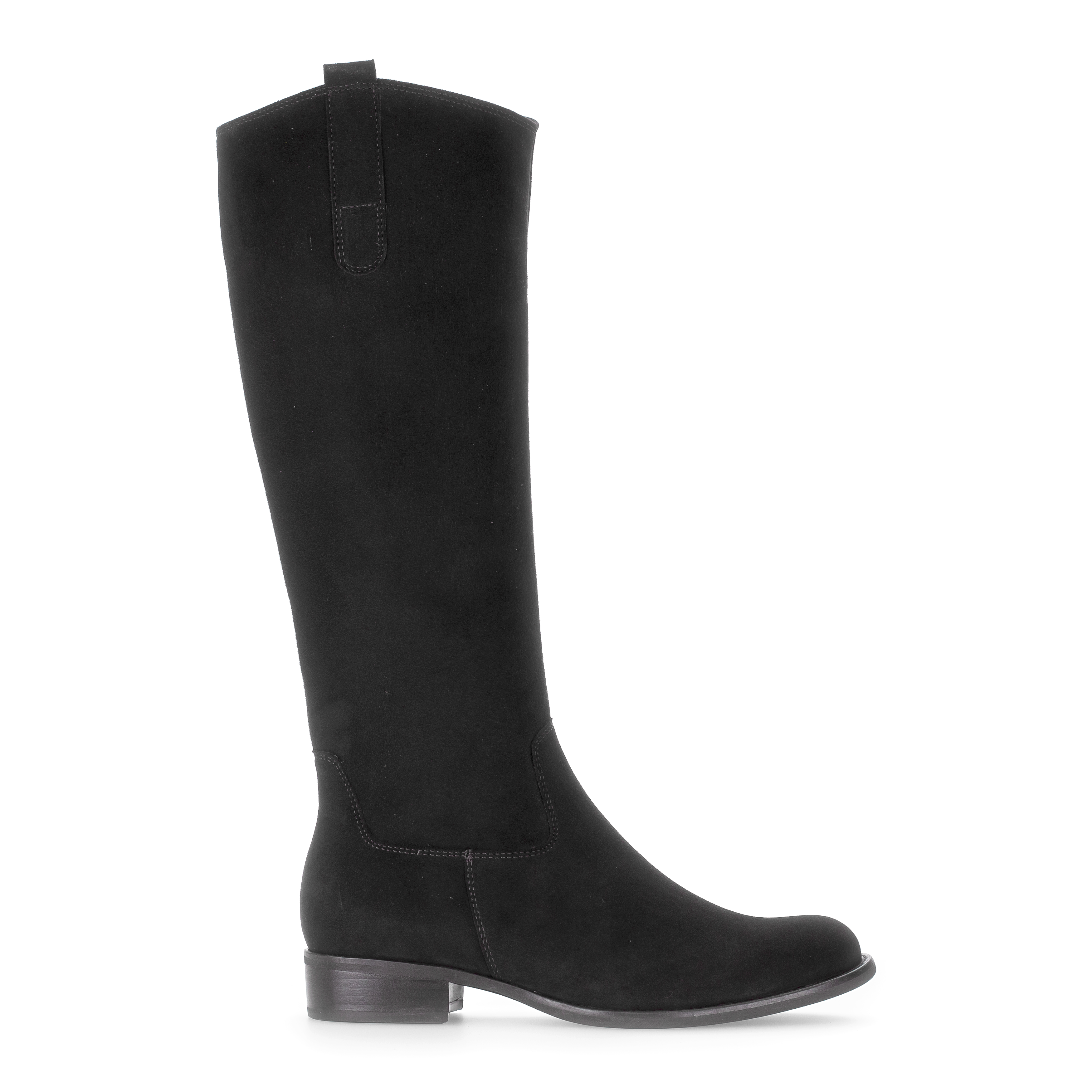 Lange laars voor dames uit de Gabor Fashion collectie. Deze lange laars is gemaakt van soepel zwart suede en heeft een makkelijke rits aan de binnenzijde. De schachtwijdte is "M" en het voetbed is uitwisselbaar zodat ook een eigen voetbed gebruikt kan worden. De laars heeft een rubberzool met een laag hakje zodat je de hele dag comfortabel en elegant voor de dag komt.