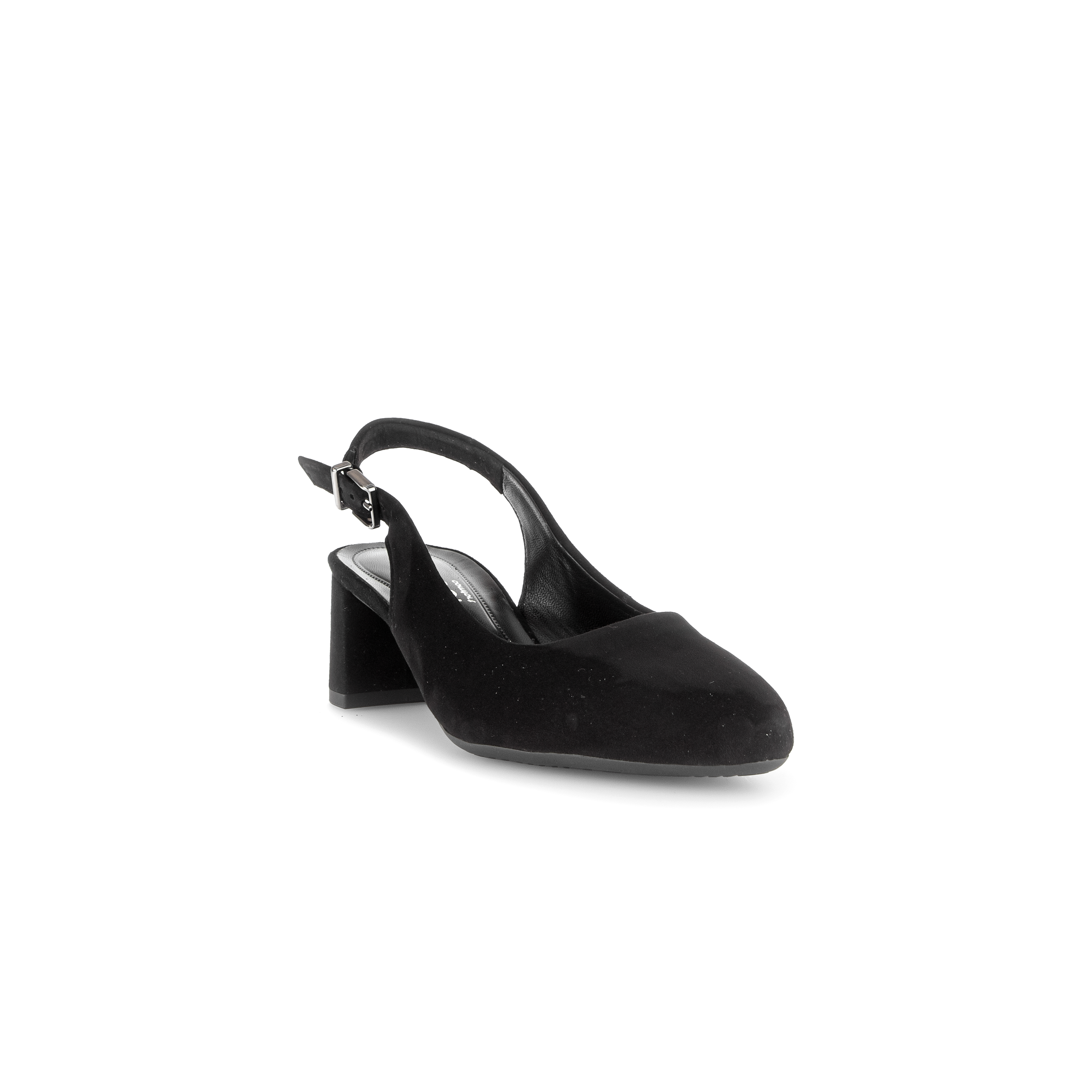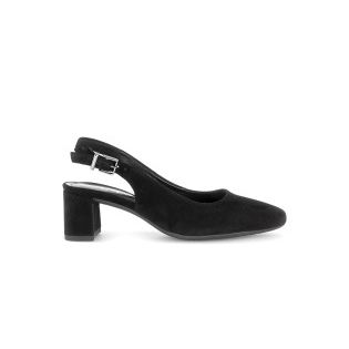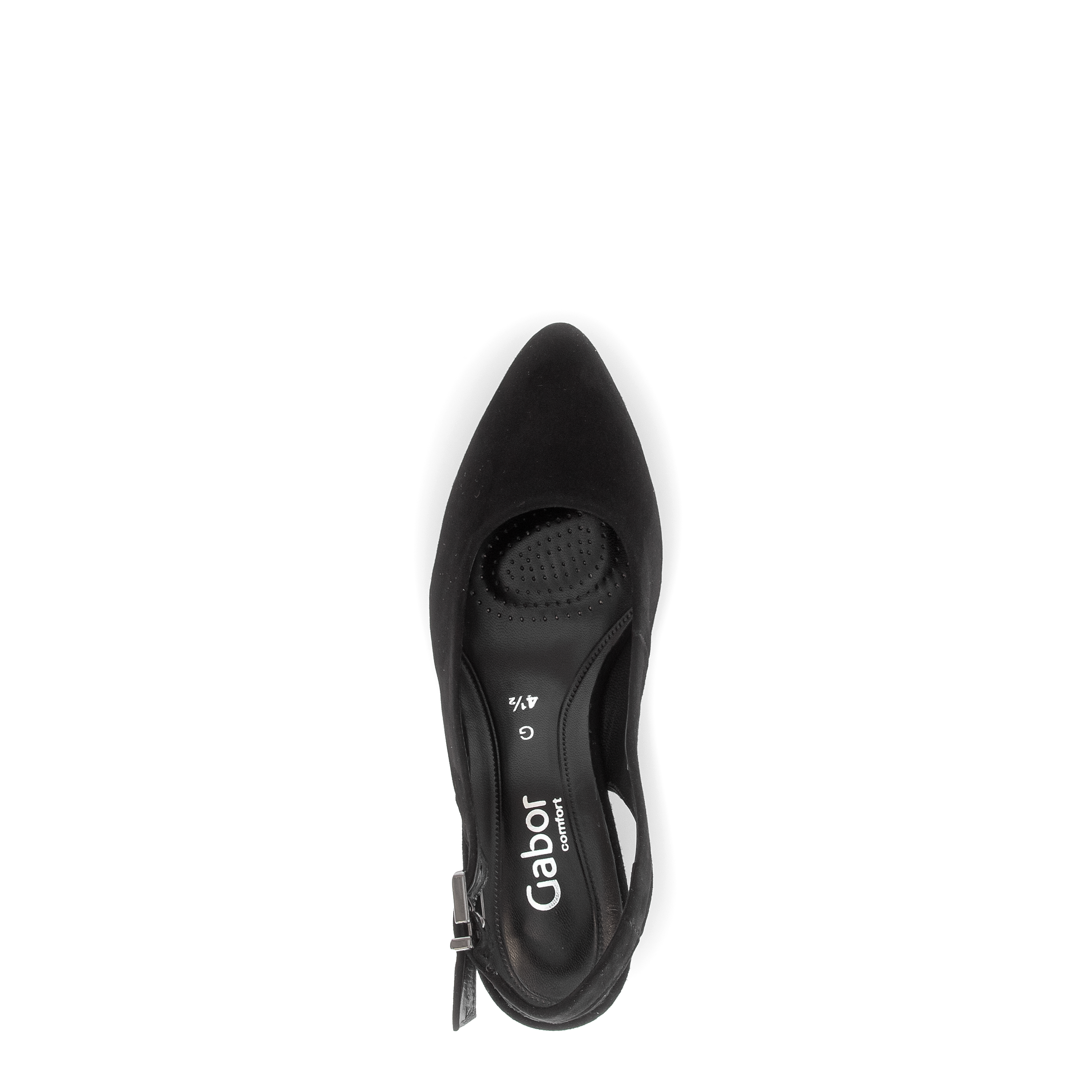 Deze slingback uit de Gabor Comfort collectie is gemaakt van zacht en soepel suede in de kleur zwart. De met suede omklede hak van 45mm is elegant en geeft toch stevigheid. De leren binnenvoering en het gepolsterde voetbed zorgen voor een prima loopcomfort de hele dag lang. De wijdte G is prima geschikt voor de gemiddelde tot de wat vollere voet. De soepele rubberzool geeft goede grip en comfort.