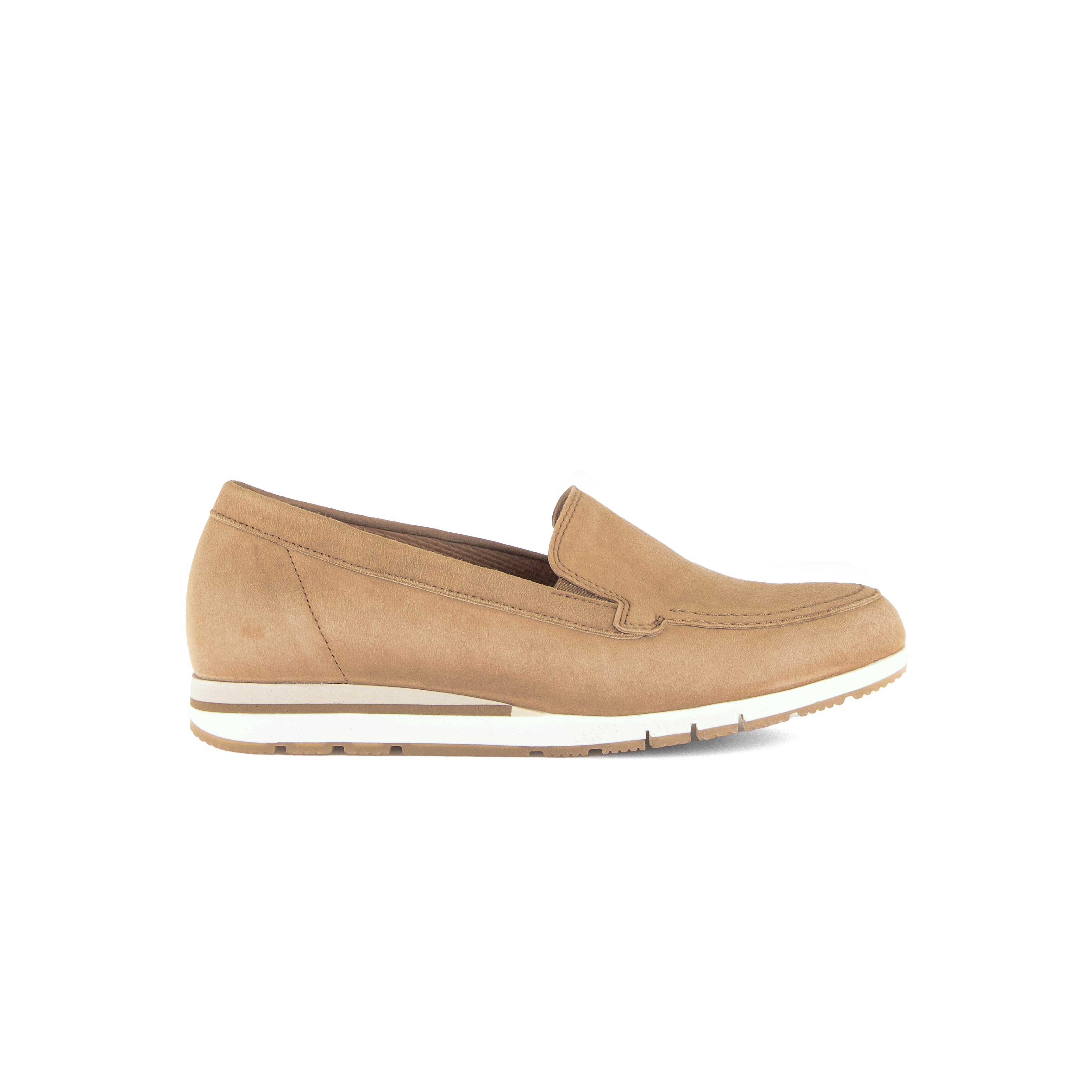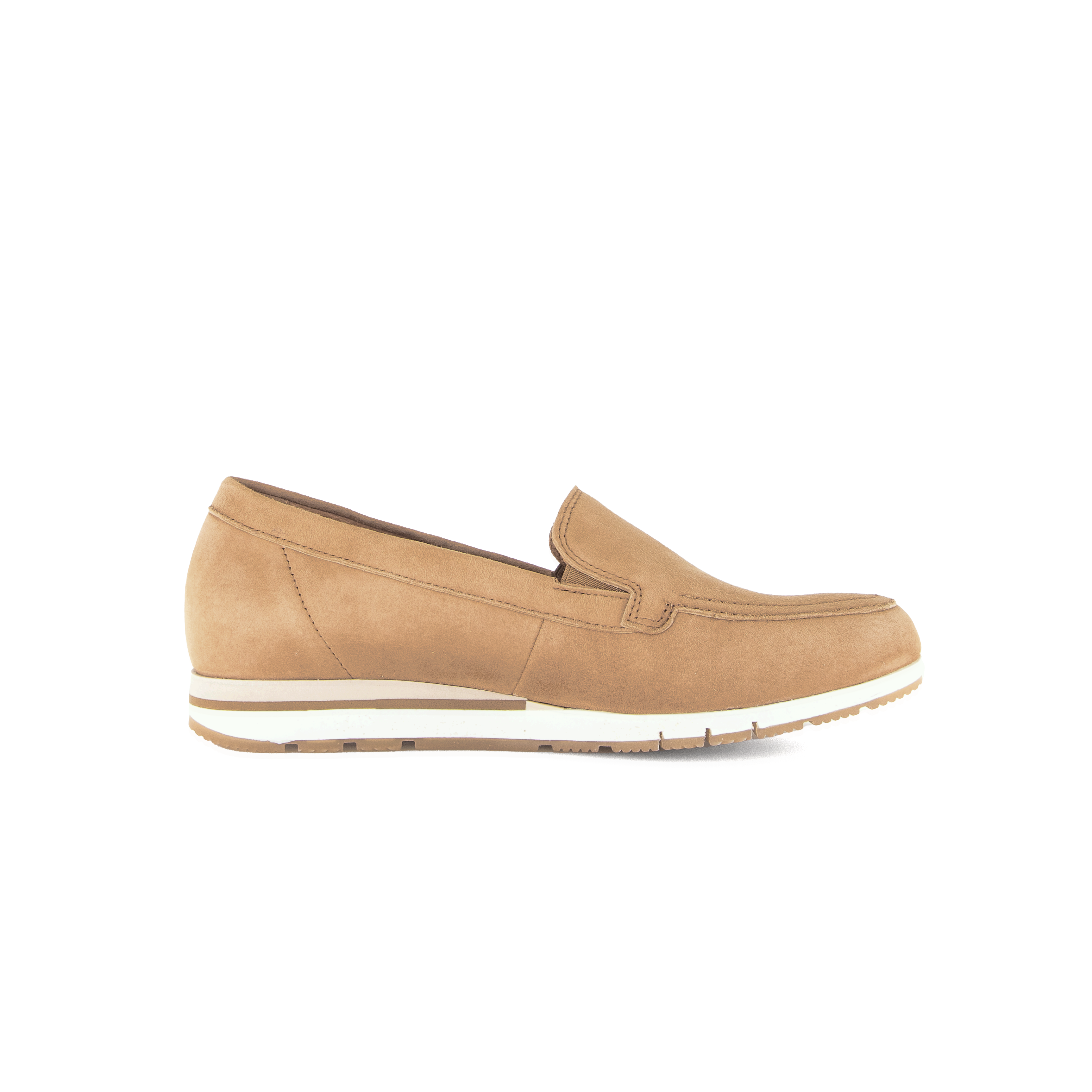 Deze sattel sportieve instapper voor dames is gemaakt van lichtbruin nubuck en heeft een sportieve witte zool. De soepele loopzool en het uitneembare voetbed maken het gebruik van een eigen zooltje mogelijk, daarbij zorgen ze voor een aangenaam draagcomfort. De wijdte is een comfort G dus een gemiddelde tot bredere pasvorm. Deze nieuwe kleur Sattel loafer combineer je gemakkelijk bij je zomerse casual outfit.