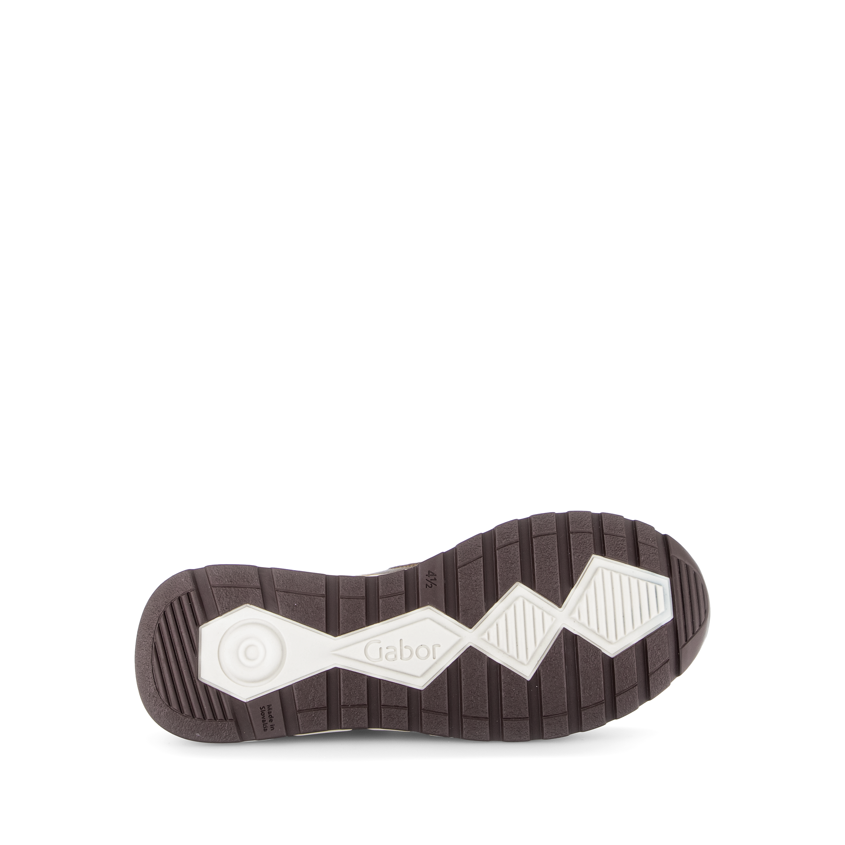 Beige sneaker voor dames uit de Gabor Comfort collectie. De sneaker is gemaakt van een mix van materialen zoals beige suede, creme leer en bronze accenten. De binnenvoering is van comfortabel zachte stof en een suede hiel voor optimaal comfort. Het leren voetbed is uitneembaar zodat het gebruik van een eigen zooltje ook mogelijk is. De wijdte H is geschikt voor een brede voet. De witte rubberzool is stevig, geeft goede grip en benadrukt het sportieve karakter van deze luxe veterschoen voor dames. Voor het gemak heeft deze sneaker een handige rits naast de vetersluiting.