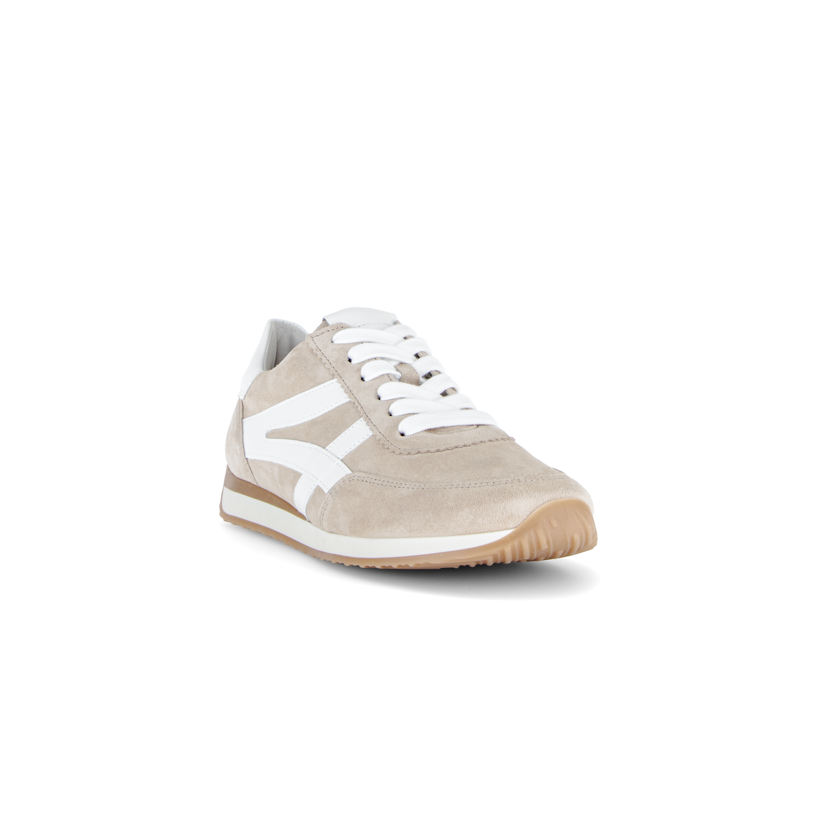 Deze beige suede sneakers voor dames uit de Gabor Comfort collectie zijn gemaakt van soepel en zacht suede met sportieve witte accenten. De vintage sneaker heeft een comfortabele leren binnenvoering en een verende binnenzool die ook uitneembaar is zodat ook een eigen voetbed gebruikt kan worden. De wijdte H past prima bij de bredere voet. De soepele rubberzool geeft goede grip en comfort bij elke stap. Match deze chique suede sneaker bij je casual outfit en je look is compleet.