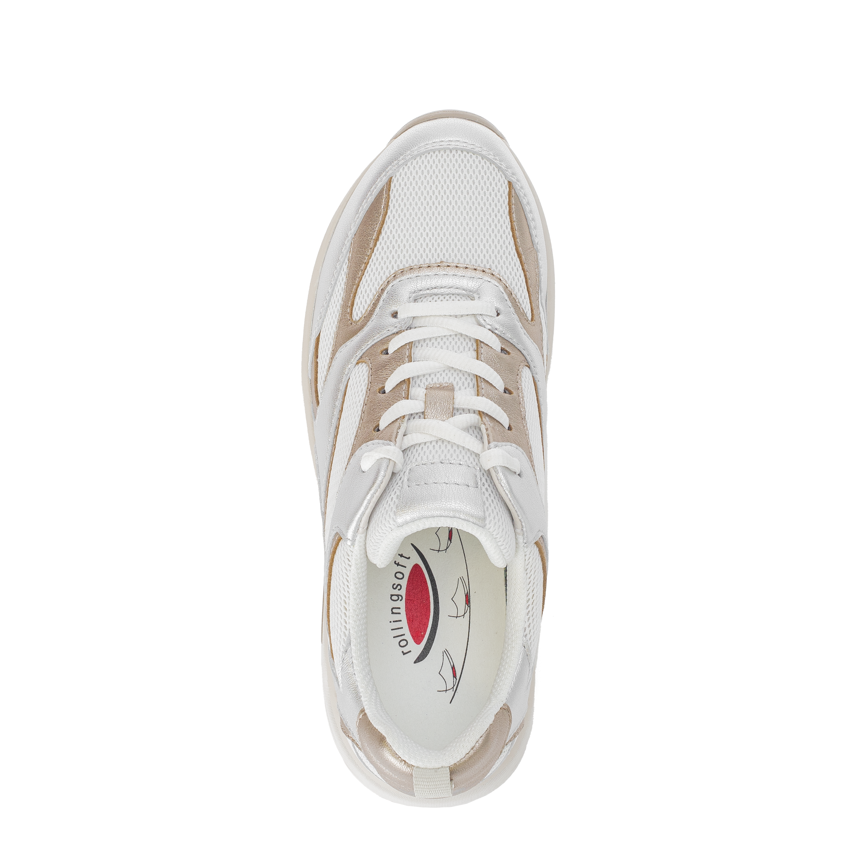 Deze Puder kleur Rolling Soft sneaker voor dames is gemaakt van een combinatie van verschillende materialen zoals beige leer, mesh en suede met satin accenten. De zachte binnenvoering en het uitneembare voetbed maken de sneaker geschikt voor het gebruik van een eigen voetbed. Dankzij de ruime pasvorm past deze lichtgewicht sneaker ook prima bij een bredere voet. Het lichtgewicht onderwerk met de bekende Rolling Soft afwikkelzool zorgt voor een comfortabel gevoel bij elke stap.