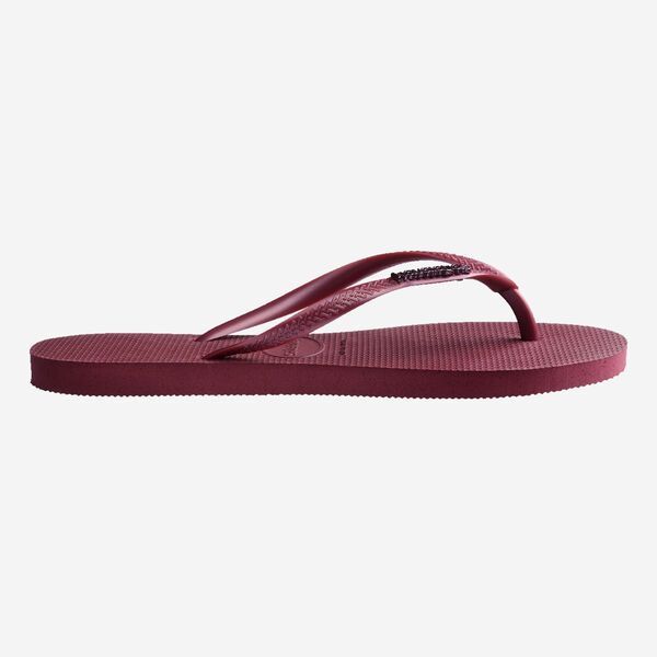 De Slim Logo Metallic Amaranth slipper voor dames is een paarse metallic slipper met een metalen Havaianas logo.