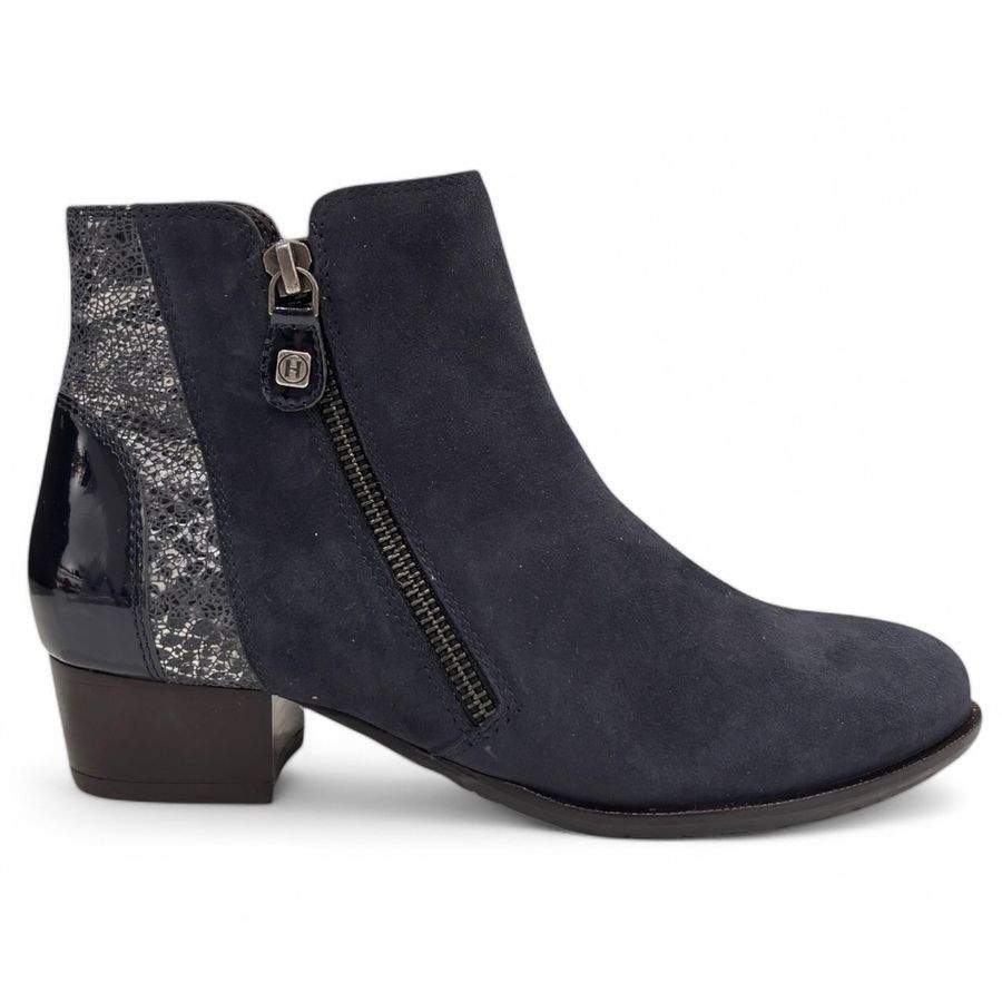 De 560.016 is een enkellaarsje voor dames gemaakt van blauw suede met accenten van blauw lakleer en een subtiele print. Dit suede laarsje heeft twee handige ritsjes voor een makkelijke instap. De wijdte H en het uitneembare voetbed zorgt voor voldoende ruimte voor de bredere voet. De rubberzool met licht profiel en het makkelijk loopbare hakje zorgen voor een optimaal loopcomfort.