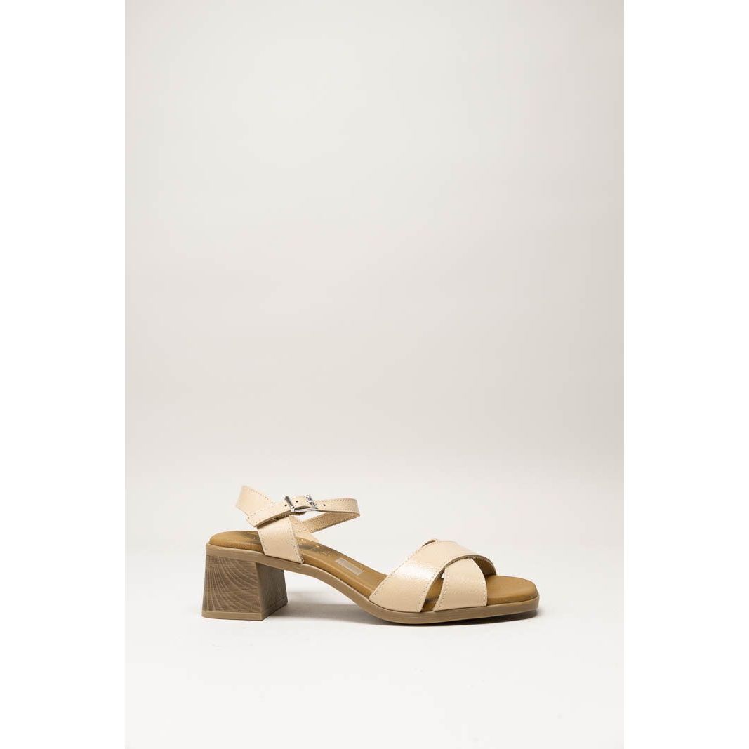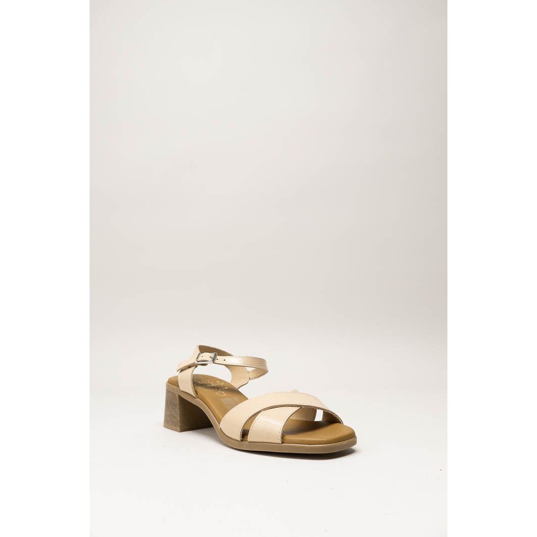 De 5908 Duna Hielo is offwhite sandaal gemaakt van soepel lakleer met een carre neus. Het zachte leren voetbed geeft een comfortabele demping. Draag deze elegante sandaal op een 50mm hak bij je zomerse outfit en je look is compleet.