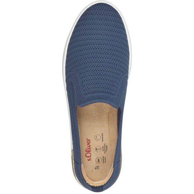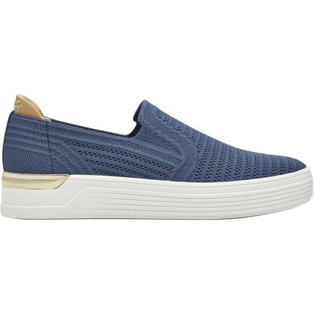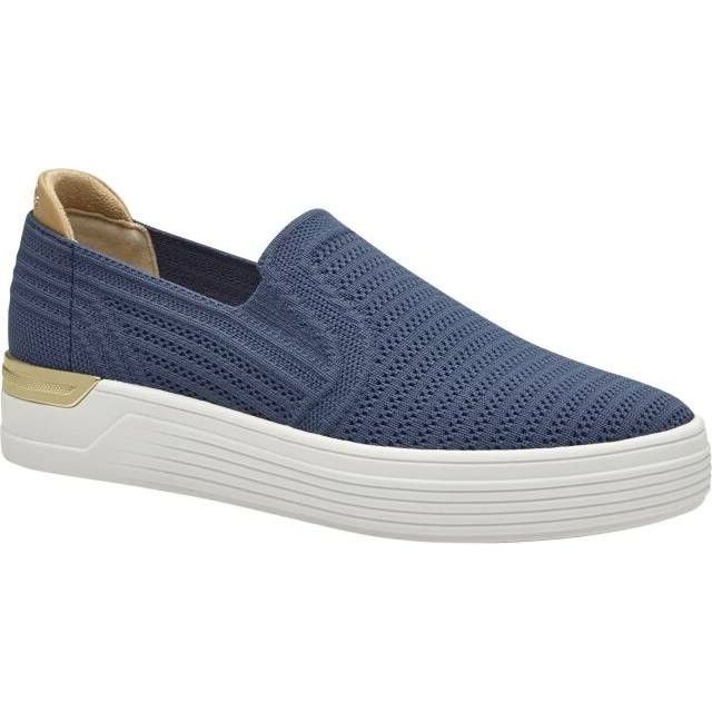 Deze blauwe instapper voor dames staat op een soepele witte sneakerzool. De upper is van synthetisch materiaal met twee elastieke inzetten zodat de instapper goed aan de voet sluit. Het uitneembare voetbed is gemaakt van soft foam zodat elke stap comfortabel loopt.