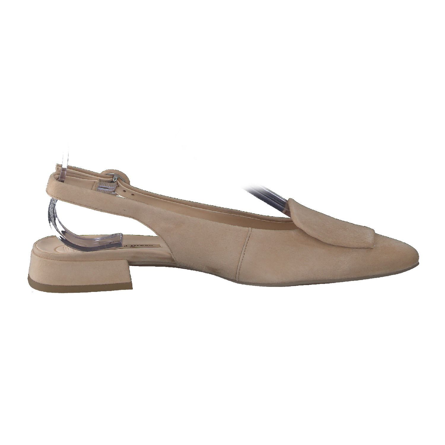 Deze platte sling pump voor dames mag niet ontbreken in je garderobe deze zomer. De pump is gemaakt van zachte suede in de mooie kleur Dakar/Sand en past perfekt bij de huidige zomertrend kleuren in de mode. De zachte binnenvoering en fijn ondersteunende voetbed zorgen voor een optimaal comfort de hele dag lang. Het platte blokhakje staat elegant en geeft de sling een stijlvolle uitstraling.