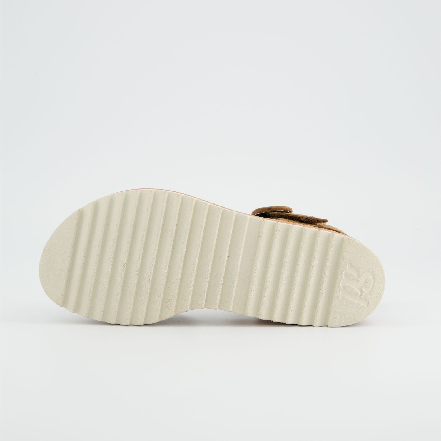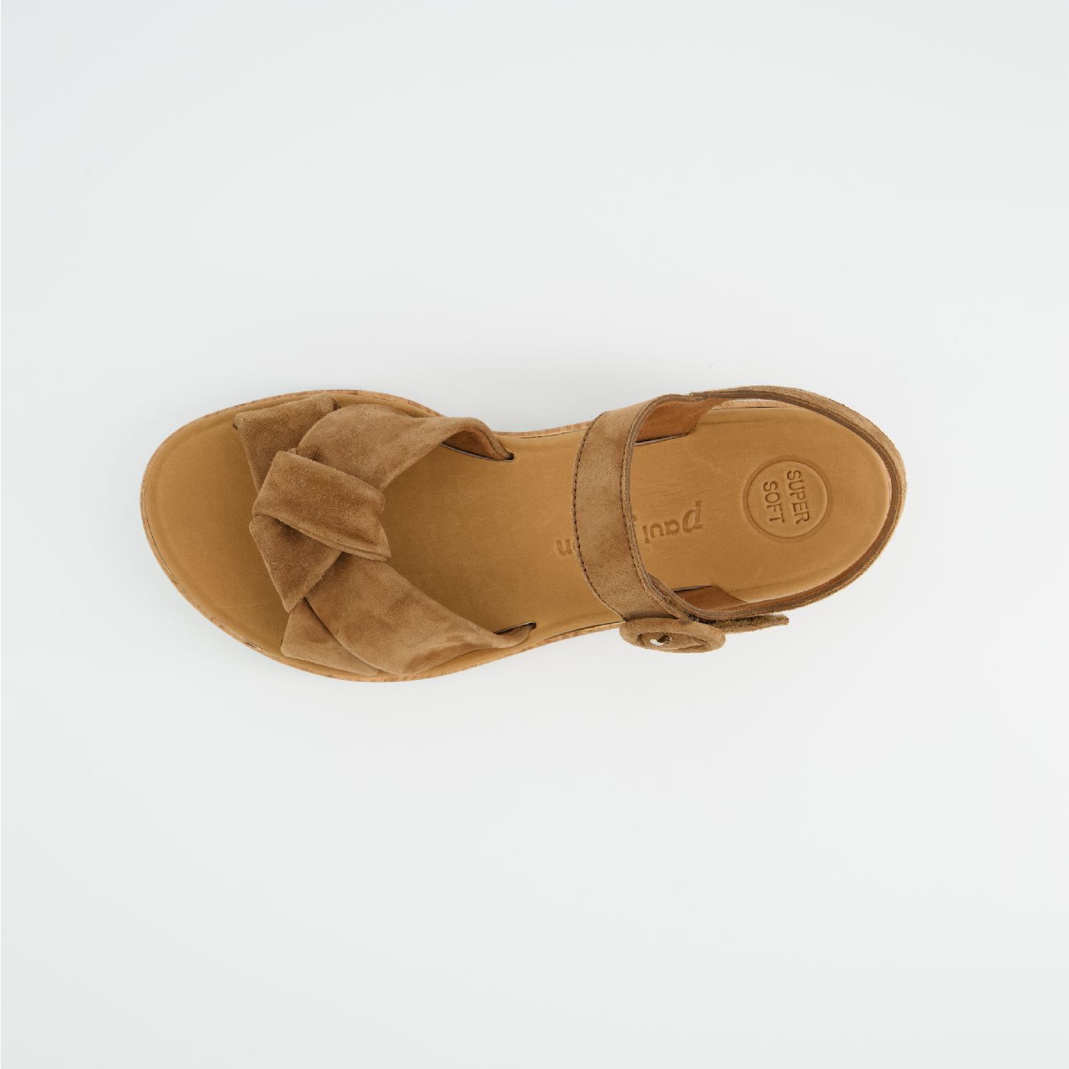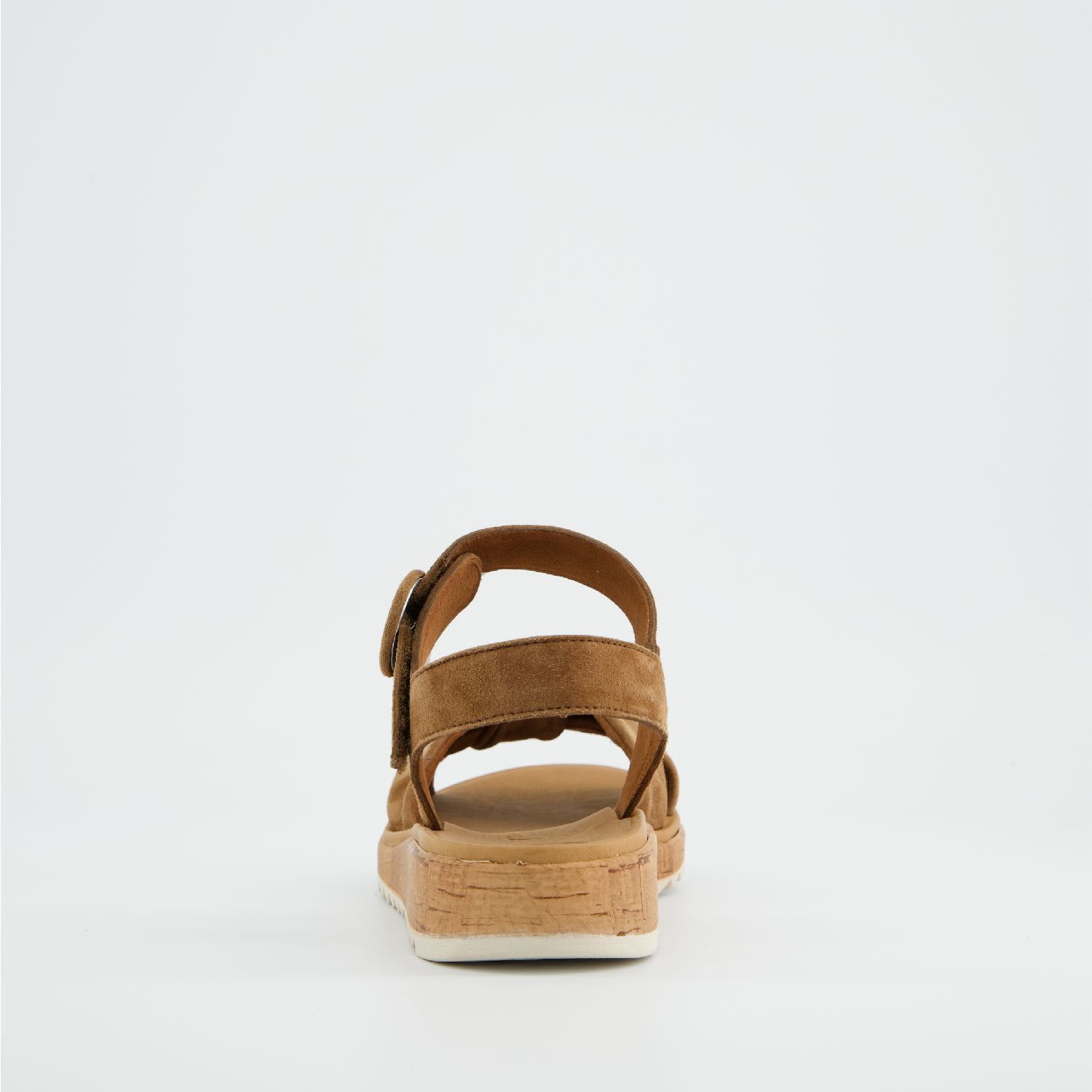 Trendy bruine sandaal 6105 voor dames van Paul Green. Deze sandaal is gemaakt van soepel suede met een leren binnenvoering. De verborgen klittenbandsluiting op de enkelband, wordt gecamoufleerd door de ronde gesp. Het leren voetbed en de leren voering zorgen voor veel loopcomfort. Dankzij de witte rubberen loopzool met ribbelprofiel heb je een goede grip bij iedere stap. Combineer 'm onder een fijne jurk of juist onder een jeans om je outfit een trendy touch te geven!
