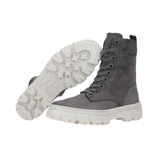 Deze Grijs suede veterboot van Paul Green heeft zowel een veter als een ritssluiting voor het gemakkelijk aan en uittrekken. Het voetbed zorgt voor een optimaal loopcomfort en de grove rubberzool voor een stoere look.