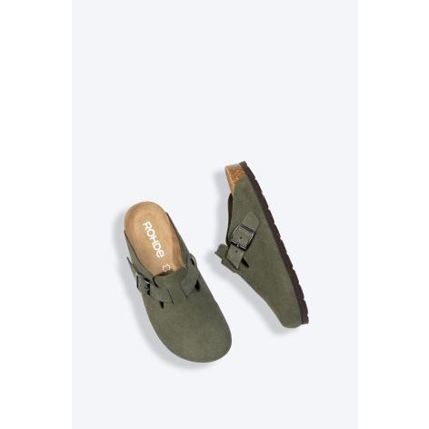 Trendy groen suede slipper voor dames met een prettig voetbed en soepele rubberzool. Maak je casual outfit compleet met deze hippe slipper.