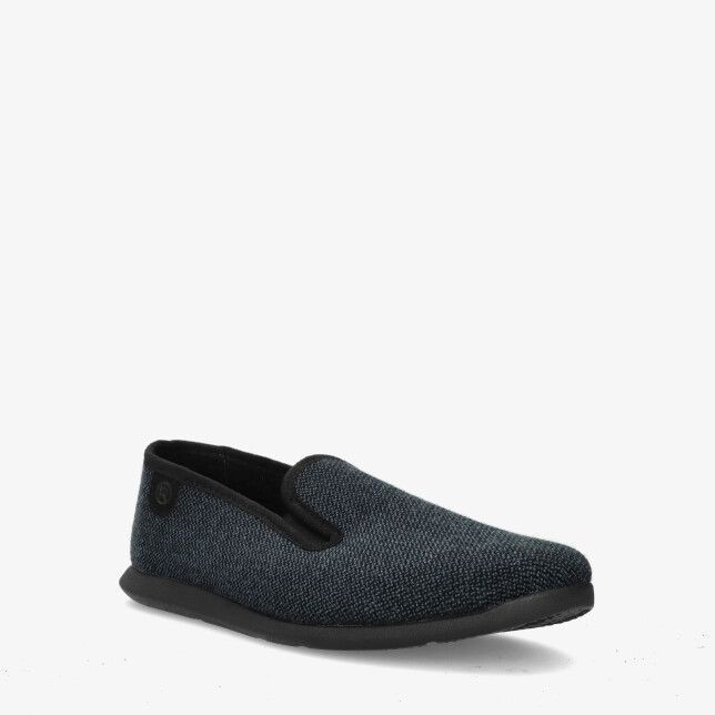 Deze jeansblauwe pantoffel voor heren is gemaakt van zacht textiel en heeft een comfortabele voering. Door de elastieke inzetten trek je de pantoffel gemakkelijk aan en uit, bovendien blijft de pantoffel perfekt aangesloten aan de voet. De soepele rubberzool geeft grip en comfort de hele dag lang. Deze pantoffel heeft een gemiddelde G1/2 wijdte en bovendien een uitneembaar voetbed zodat ook een eigen zooltje in deze pantoffel gedragen kan worden.