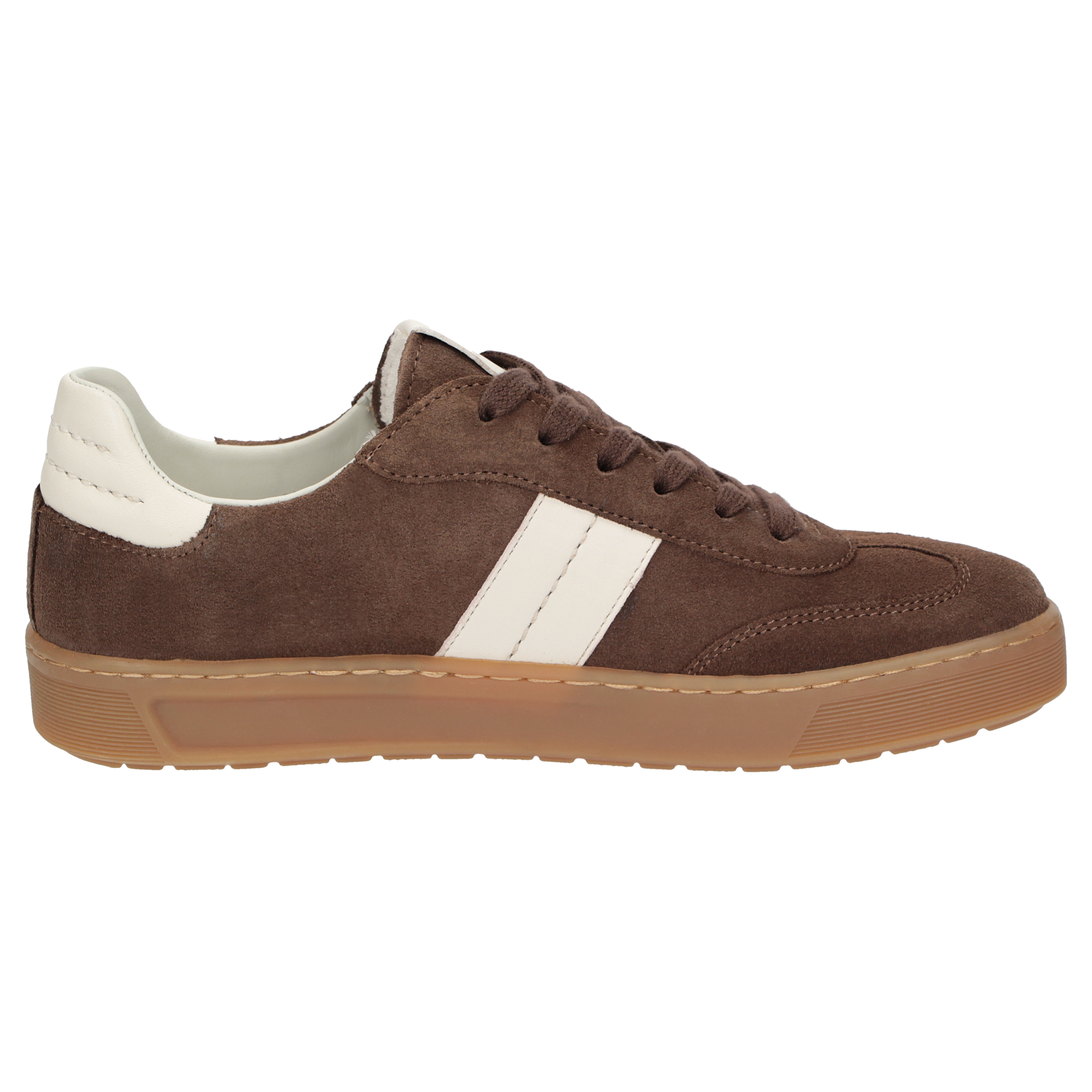De Tedroso Coca Calce is een retro sneaker voor dames gemaakt van bruin suede met wit leren accenten op de zijkant en de hiel. De zacht stoffen binnenvoering en het uitneembare voetbed zorgen voor een perfekte pasvorm en comfort. De lichtbruine gummizool geeft grip en versterkt de vintage uitstraling van de sneaker. Match deze sportieve veterschoen onder je casual outfit en je zomerse look is compleet.