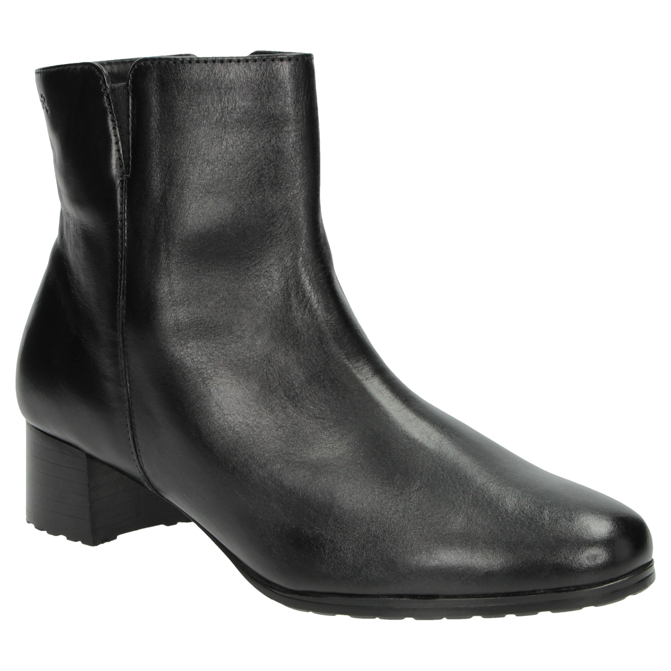 De Fendrina 712 is een zwart laarsje voor dames. Het enkellaarsje is gemaakt van soepel zwart leer en heeft een comfortabel zachte binnenvoering. Het vaste supersoft voetbed is verend en loopt zeer comfortabel. Aan de binnenzijde is dit elegante laarsje voorzien van een ritsje voor het gemak. Het fijne profiel op de rubberzool en hak geven goede grip en comfort. De wijdte -G- is prima geschikt voor de gemiddelde tot iets bredere voet. Het kleine hakje geeft dit tijdloze laarsje met hoog draagcomfort net iets meer elegantie en een luxe uitstraling.