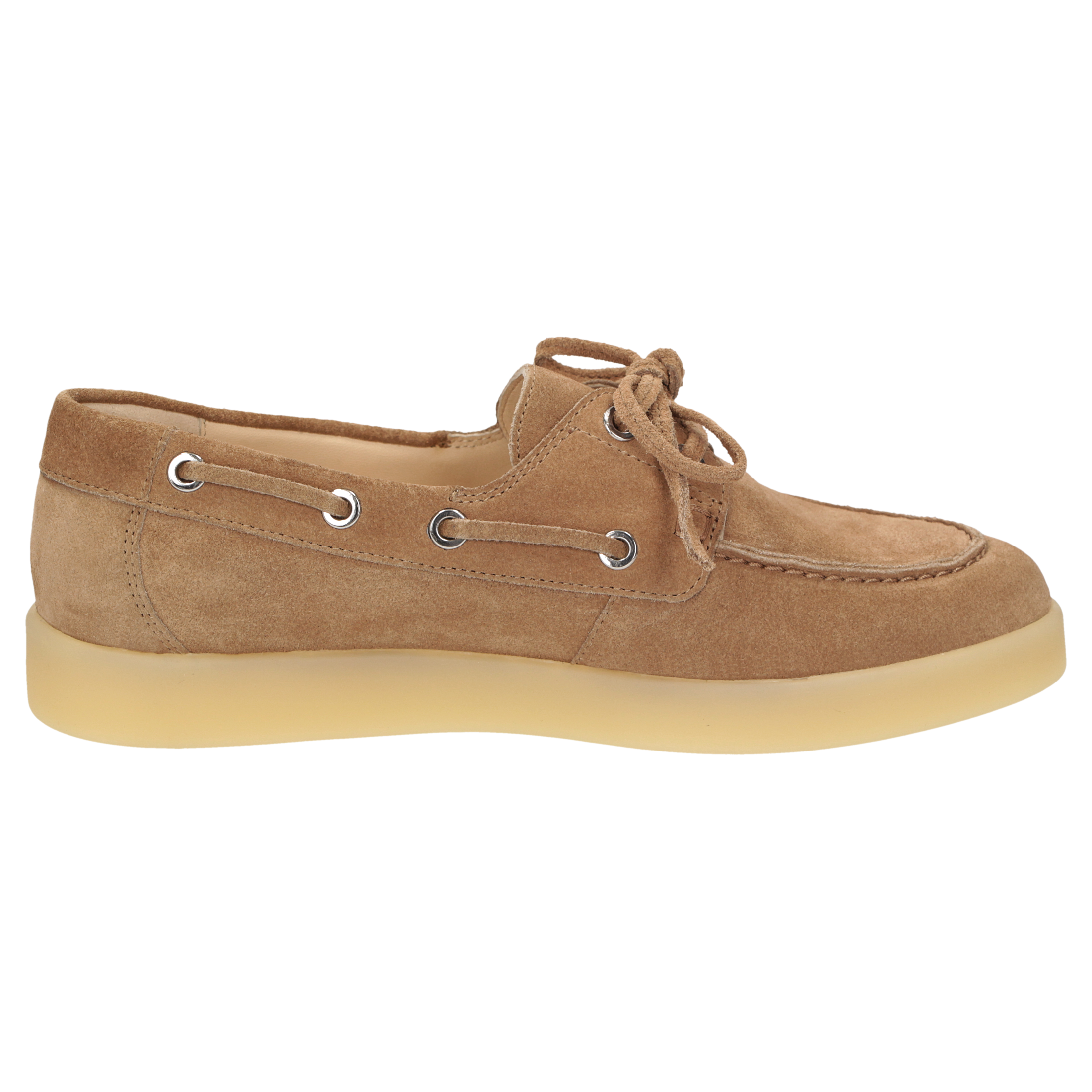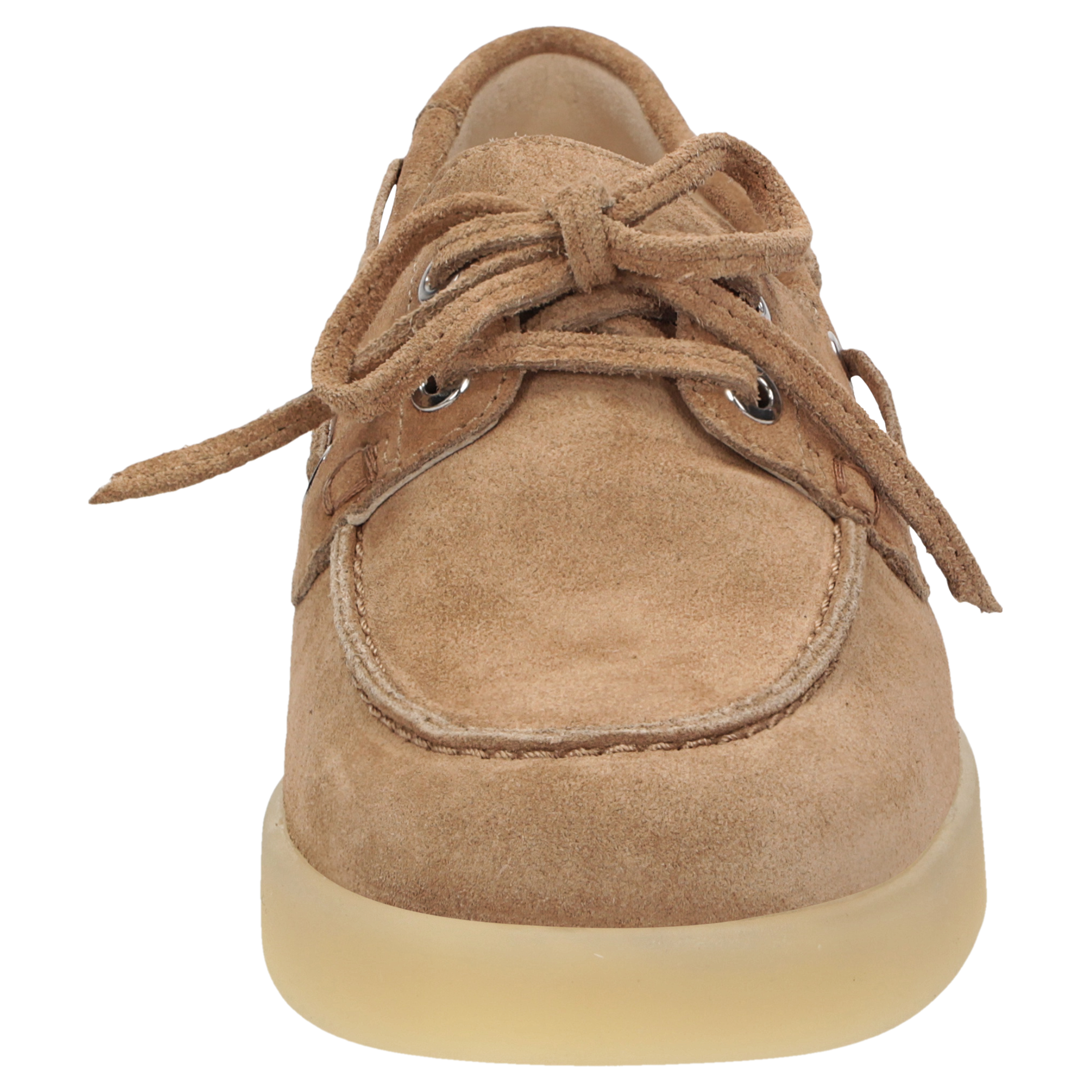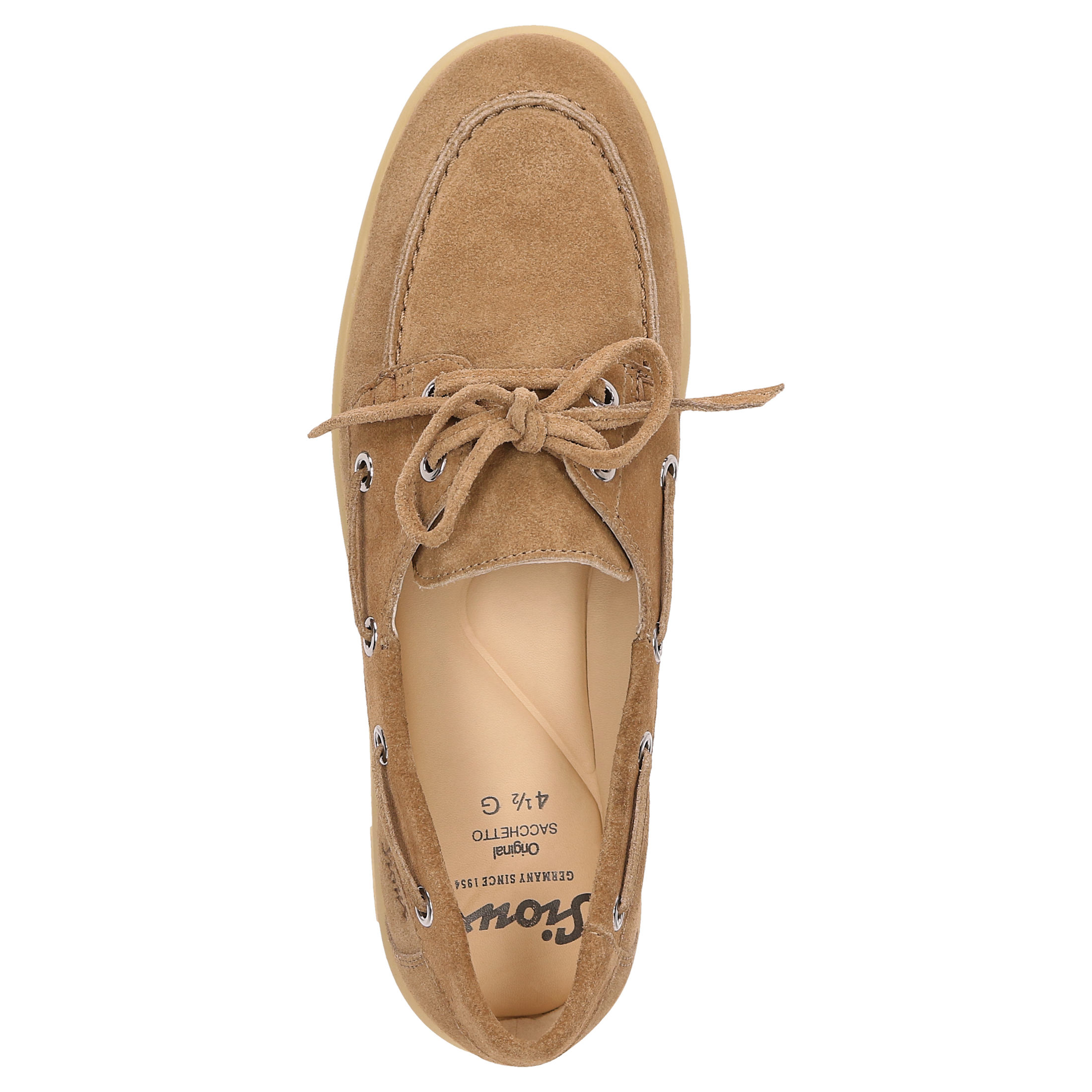 De Melosana Biscotto is een bootschoen voor dames op een moderne rubberzool die goede grip en comfort geeft. De schoen heeft een klassieke uitstraling door de mocassin stiknaad op de neus en de doorgeregen veter. De originele sachetto maakwijze zorgt voor een optimaal voetcomfort mede door het gebruik van een soepel suede upper en een zachte kalfsvoering en binnenzool. Match deze trendy schoen bij je casual outfit en je stijlvolle look is compleet.