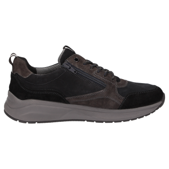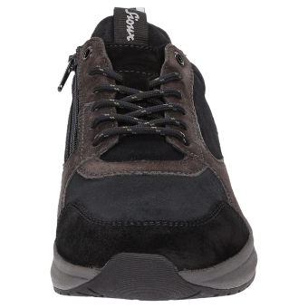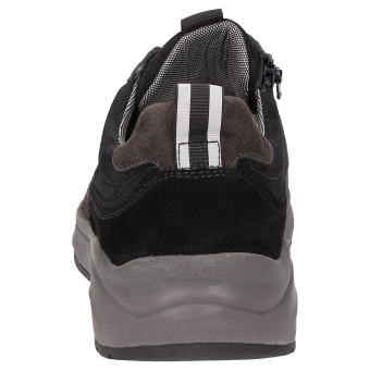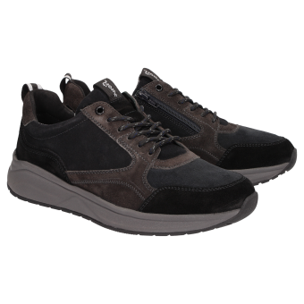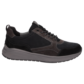 De Tasulio 702-J Black is een zwarte sneaker voor heren gemaakt van soepel suede in de kleurencombi zwart met donkerblauw en grijs. De schoen heeft stretch materiaal op de voorvoet zodat deze gecombineerd met de extra wijdte comfortabel aansluit op de bredere voet. Naast de vetersluiting heeft deze sportieve veterschoen voor heren een gemakkelijk ritje aan de binnenzijde van de schoen. De zachte binnenvoering en het uitneembare supersoft voetbed zorgen voor veel comfort. De lichtgewicht loopzool geeft goede demping en grip bij elke stap.