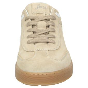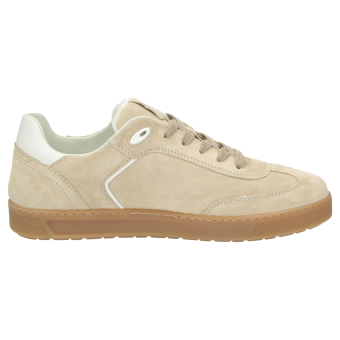 De Tedroso is een retro sneaker voor heren gemaakt van soepel beige suede met subtiele wit leren accenten die de sportieve look van deze schoen benadrukken. De zachte badstof binnenvoering en uitneembare voetbed zorgen voor een comfortable pasvorm. De wijdte van deze casual herensneaker is een gemakkelijke G wijdte zodat ook de iets bredere voet zich thuis voelt. De rubberen zool geeft goede grip en is soepel zodat je je de hele dag comfortabel loopt.
