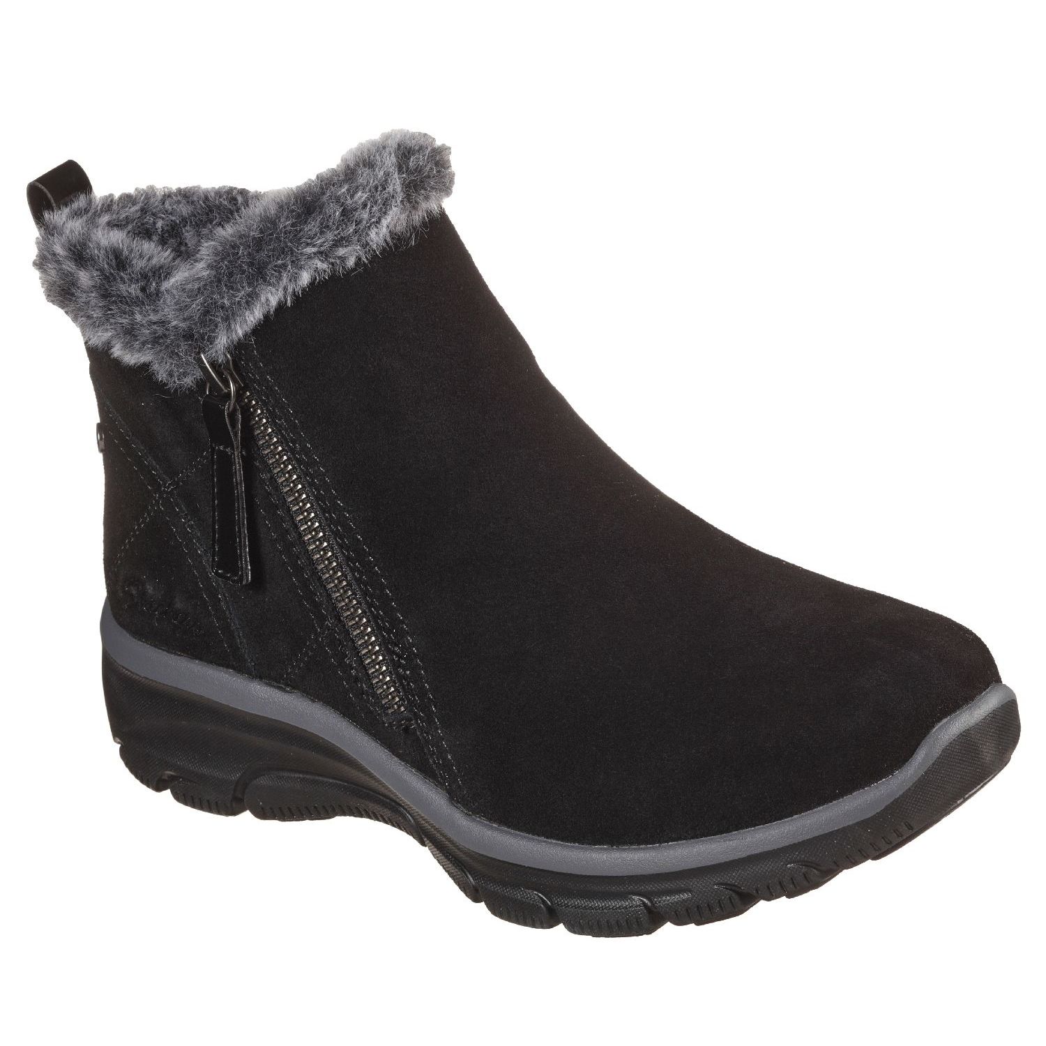De Skechers Easy Going High Zip is een zwarte halfhoge sneaker voor dames gemaakt van zwart suede. Het suede is geimpregneerd met 3M Scotchgard zodat vuil en vocht geen kans krijgen op deze luxe winterboots voor dames. Het laarsje is voorzien van een ritsje en een elastieke inzet voor een makkelijk instap. De stevige rubberzool en het air-cooled voetbed van memory foam geven een comfortabel gevoel, de easy fit wijdte geeft extra teenruimte.