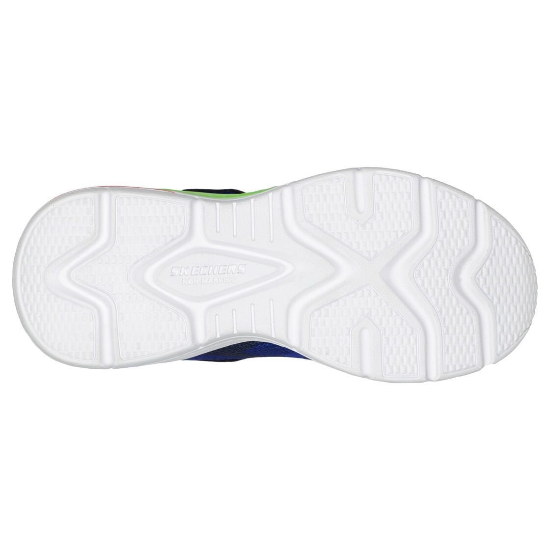 Deze blauwe Skechers voor jongens hebben lichtjes in de soepele rubberzool. De upper is gemaakt van synthetische mesh materiaal en de sneaker heeft elastische veters en een enkele kltittebandsluiting voor het gemakkelijk aan- en uittrekken. Het zachte foam voetbed zorgt voor een comfortabel gevoel bij elke stap. De lampjes op deze sneaker hebben een aan/uit knopje op de wreefband.