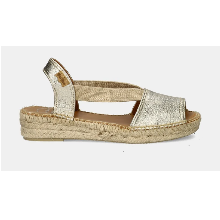 Toni-Pons Etna Platin N-Leather is een originele espadrille op een touwzool met een rubberzool die grip en comfort geeft. De platinum goud kleur past mooi bij een breed scala van kleuren. Dankzij de elastieke banden sluit de sandaal perfekt aan de voet.
