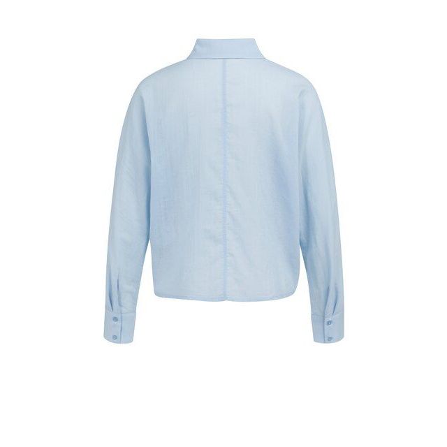 De blouse valt op door de wijde, aangeknipte mouwen die naar de polsen toe smaller worden, wat een prachtig volume creëert rond het bovenlichaam. De zichtbare naden breken het oppervlak en voegen textuur toe, waardoor de blouse net even spannender is dan een standaard top.