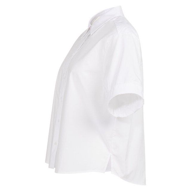 De kleur Pure White zorgt voor een frisse, cleane uitstraling die eindeloos te combineren is. Of je nu kiest voor een casual look met een jeans of een meer geklede outfit met een pantalon of rok, deze blouse vormt altijd een stijlvolle basis.