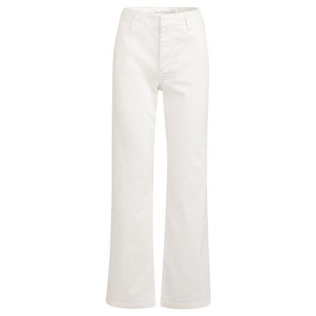 De kleur Off White Denim geeft deze chinojeans een frisse, moderne uitstraling die perfect past bij elk seizoen. Deze lichte tint is eenvoudig te combineren met zowel zachte pastels als donkere kleuren, waardoor je moeiteloos verschillende looks creëert – van casual tot smart-casual.