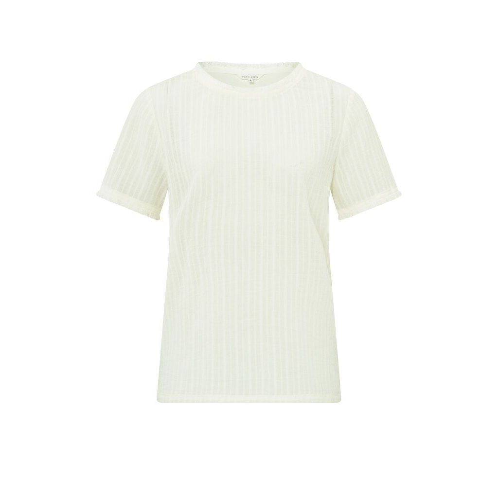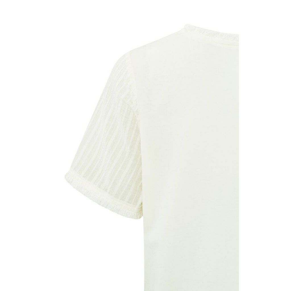 Yaya fabric mix top with fringes ivory white