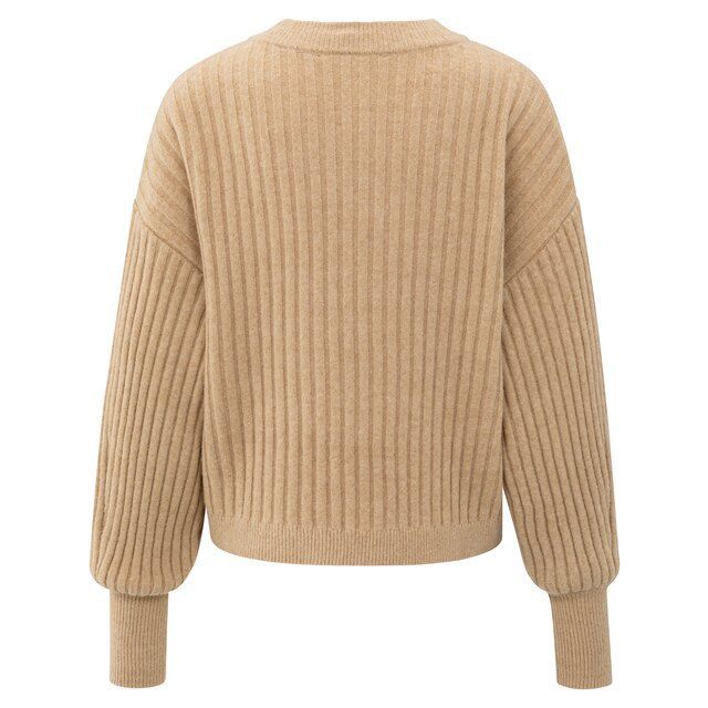 De YAYA geribde trui met ronde hals in light camel is een stijlvolle basic met een comfortabele pasvorm. De ribstructuur geeft de trui een moderne en verfijnde uitstraling. In de warme light camel tint is dit een veelzijdig item dat moeiteloos te combineren is voor zowel casual als elegante looks.