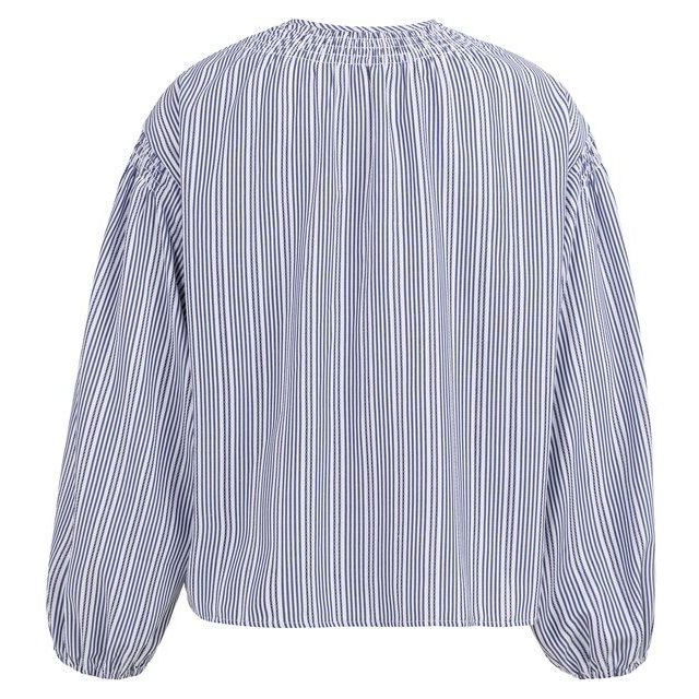 De YAYA Gestreepte Blouse met Plooien Navy Blazer Dessin is een veelzijdige essential waar je keer op keer naar grijpt. Bestel eenvoudig online bij G-level en ervaar zelf de perfecte combinatie van comfort, kwaliteit en tijdloze elegantie.