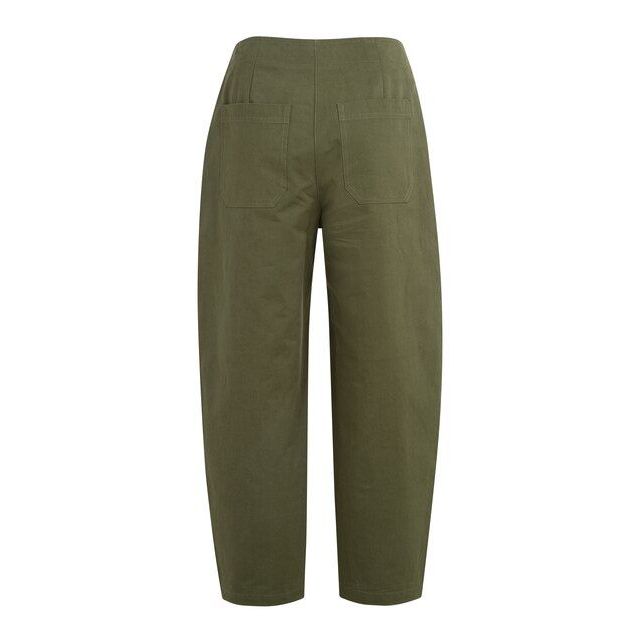 Deze YAYA High Waist Barrel Leg Trousers in Army Green is de perfecte broek voor wie op zoek is naar een modieus silhouet met een nonchalante twist. De barrel leg (ook wel de 'tonvormige' pijp genoemd) is dé trend van dit moment: de broek zit hoog in de taille, loopt wijder uit bij de bovenbenen en knieën, om vervolgens bij de enkels weer subtiel taps toe te lopen. Dit creëert een krachtig, architecturaal silhouet dat zowel stoer als elegant is.
