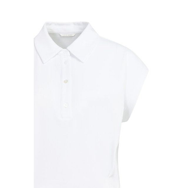 Wat dit model uniek maakt, zijn de darts (coupenaden). Deze zijn strategisch geplaatst om de blouse een subtiele taille te geven, waardoor hij mooier langs het lichaam valt dan een standaard recht T-shirt. Omdat de stof een jersey-breisel is (meestal een hoogwaardige katoen- of viscosemix met stretch), beweegt de blouse soepel met je mee zonder te trekken of te rimpelen. Het is de perfecte "desk-to-dinner" essential.
