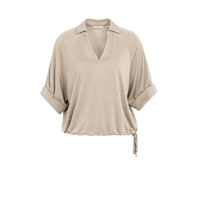 Deze YAYA Jersey Top with Pleated Sleeve in de kleur Crockery is een prachtig voorbeeld van een "elevated basic". De kleur Crockery is een geraffineerde, vergrijst bruine tint (greige) die rust en luxe uitstraalt. Het is een kleur die zich moeiteloos aanpast aan zijn omgeving: hij oogt warmer naast zandtinten en koeler naast grijstinten, wat het een extreem veelzijdig item maakt voor je garderobe.