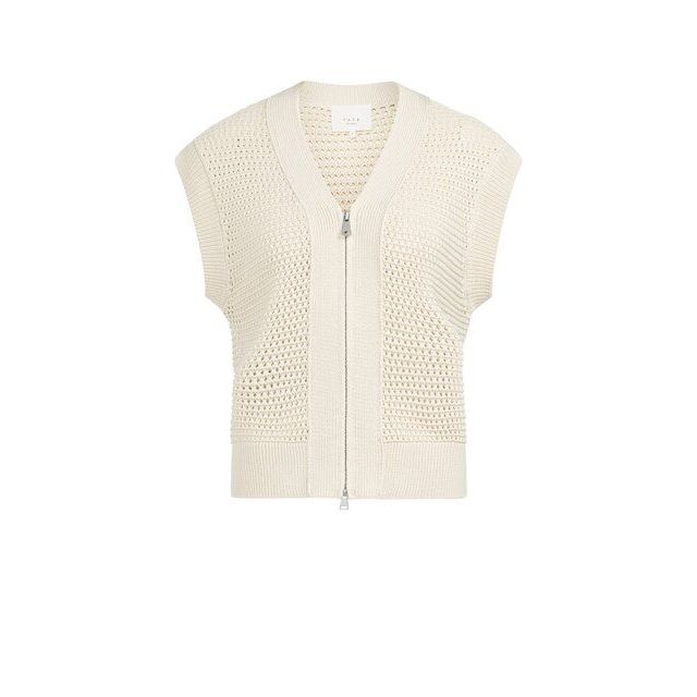 YAYA Mesh stitch sleeveless cardiga creme beige