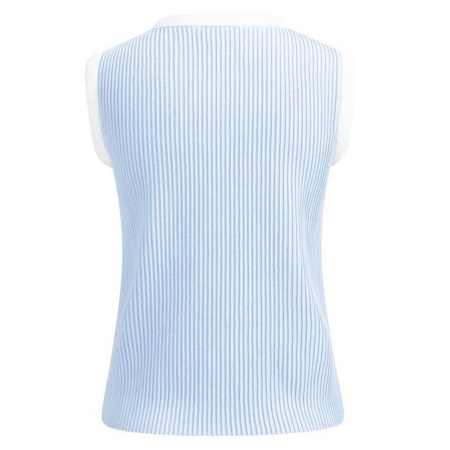 Deze YAYA mouwloze ribtrui in de kleur Ice Blue is een essentieel item voor een gelaagde en stijlvolle voorjaarslook. De frisse, lichtblauwe tint brengt direct een heldere energie in je outfit, terwijl de verfijnde ribstructuur zorgt voor een subtiel verticaal lijnenspel en een flatterende pasvorm. Dankzij het mouwloze ontwerp is deze trui perfect om solo te dragen op een zonnige dag of als chic laagje onder een kort jack of blazer wanneer het kwik daalt.