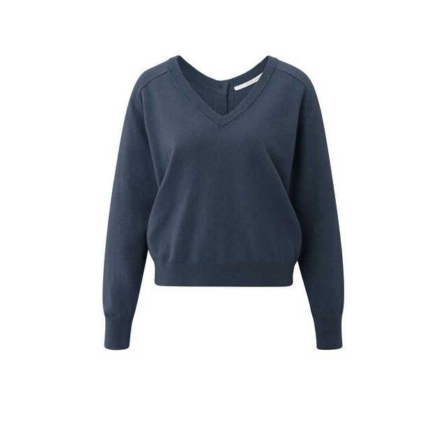 Comfort en stijl komen moeiteloos samen in deze prachtige sweater van YAYA. Uitgevoerd in een zachte melange stof en de frisse tint China Blue, straalt deze trui een relaxte, vrouwelijke charme uit. De dubbele V-hals – aan de voor- én achterkant – geeft een speelse twist aan een klassieke basic.
