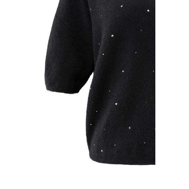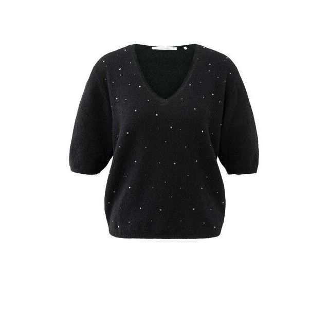 De YAYA trui met strass steentjes in zwart is een chique en sprankelend item dat direct een luxueuze touch aan je look geeft. De zachte, fijne knit zorgt voor comfort, terwijl de strass details een elegante glamour toevoegen. Een perfect stuk om zowel alledaagse outfits als feestelijke looks te laten stralen.