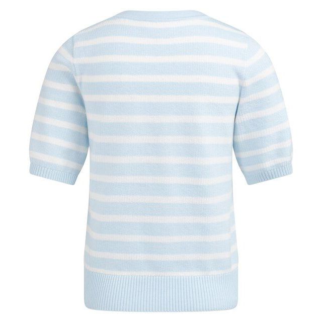 Deze YAYA trui met streeppatroon in het Ice Blue dessin is een frisse interpretatie van de klassieke streeptrui. De combinatie van helder wit met verfijnde ijsblauwe strepen geeft het kledingstuk een maritieme en zomerse uitstraling die perfect past bij een tijdloze garderobe. Het subtiele kleurgebruik zorgt ervoor dat de trui opvalt zonder te overheersen, waardoor het een ideale partner is voor zowel je favoriete jeans als een nette pantalon.