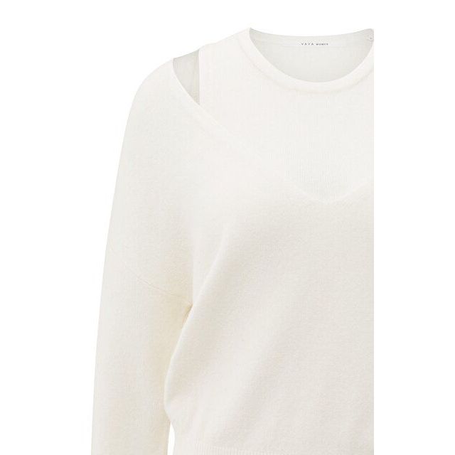 YAYA v-hals trui met top off white knit melange
